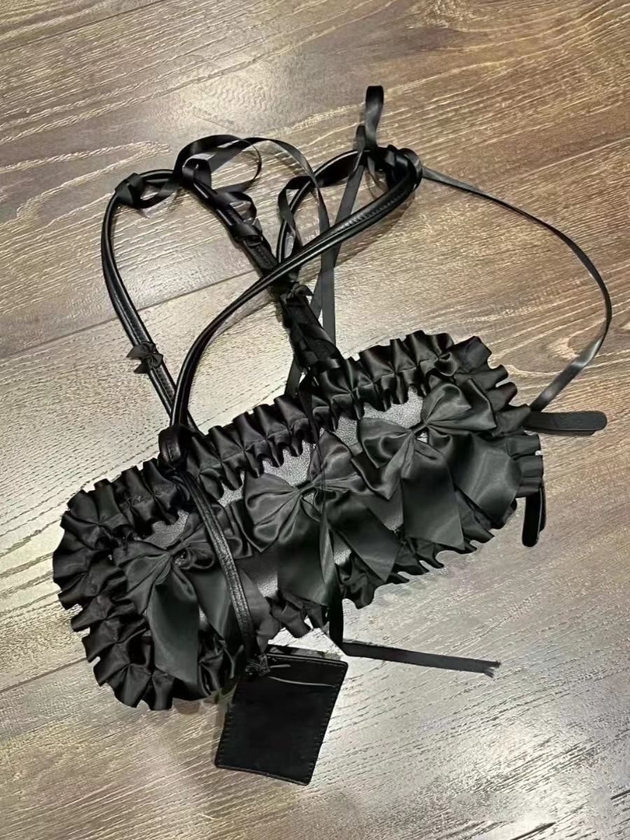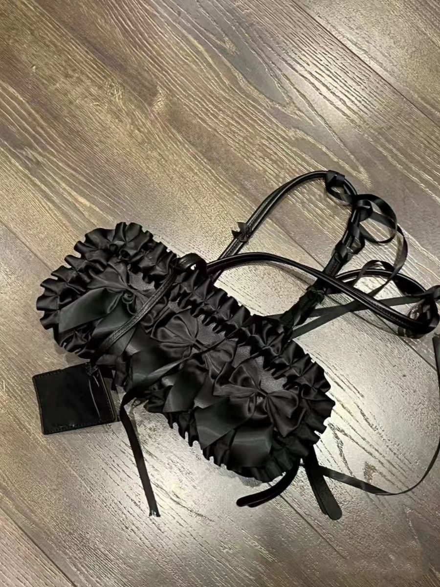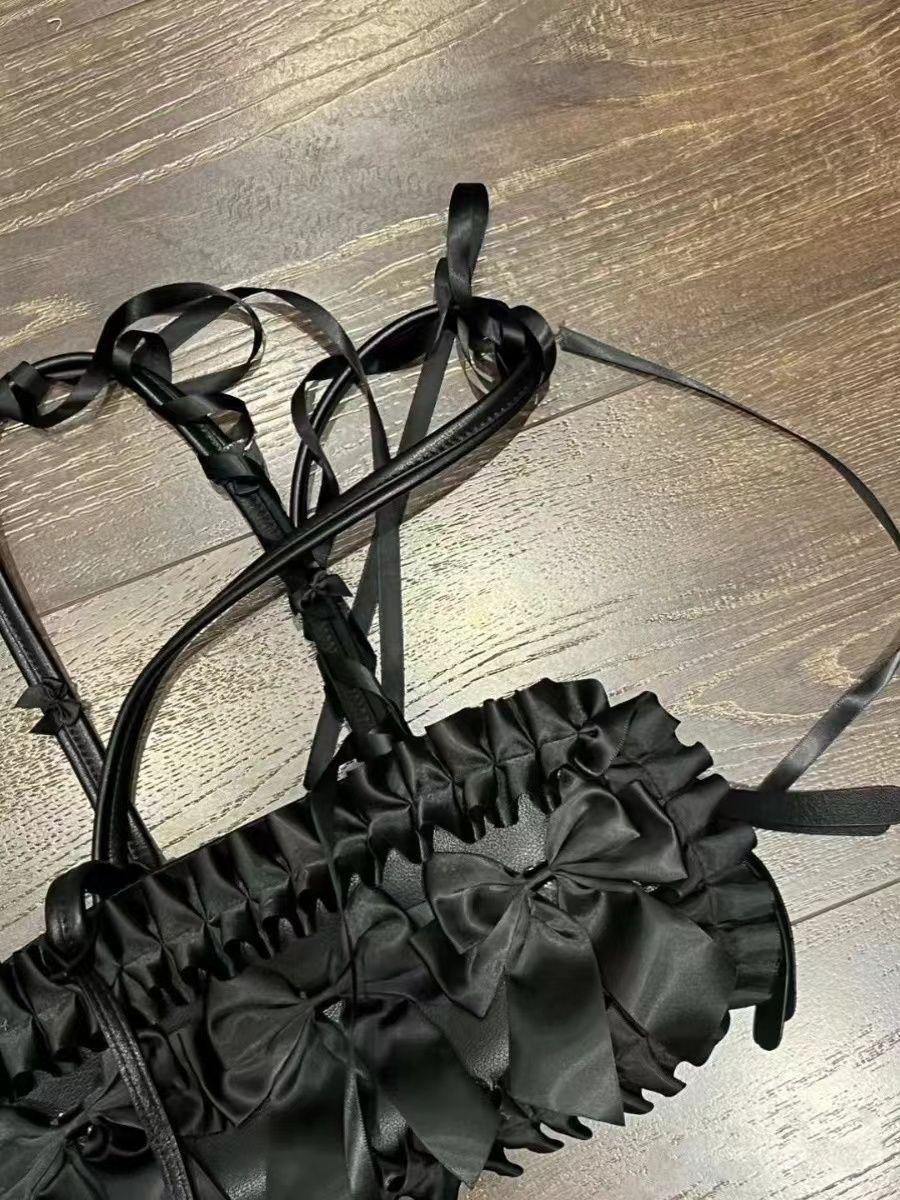 2025 Bolso Negro Verano Nuevo para Mujer Bolso Bandolera de Hombro para Estudiante Bolso de Axila con Lazo Bolso de Mano Cool