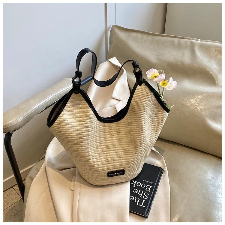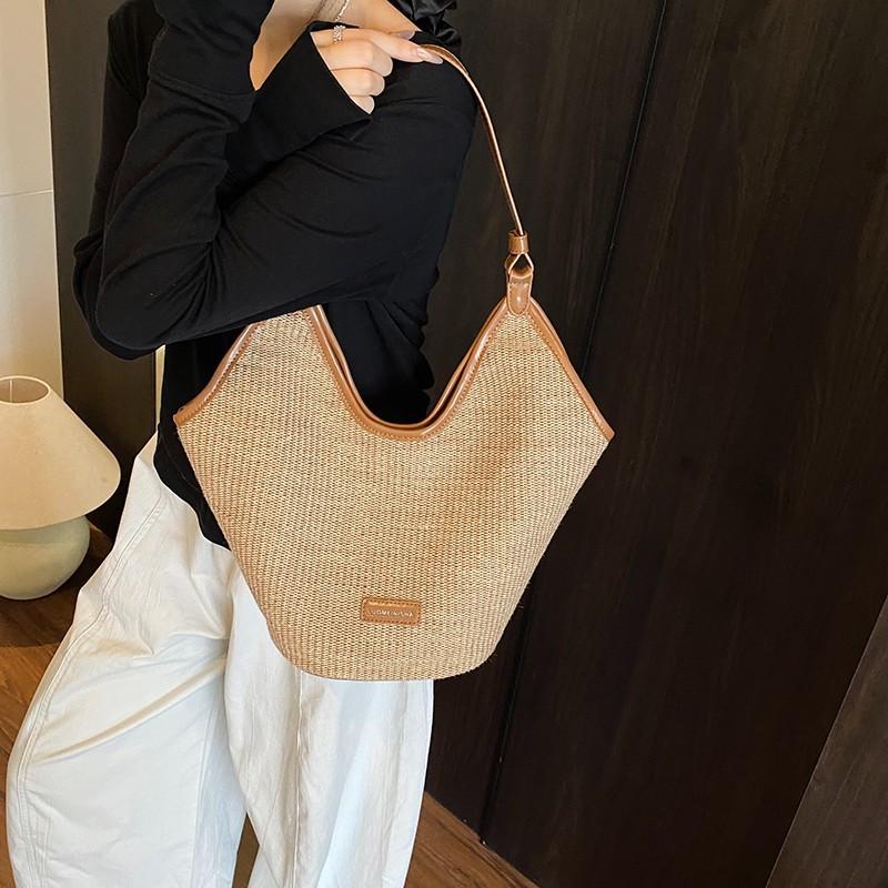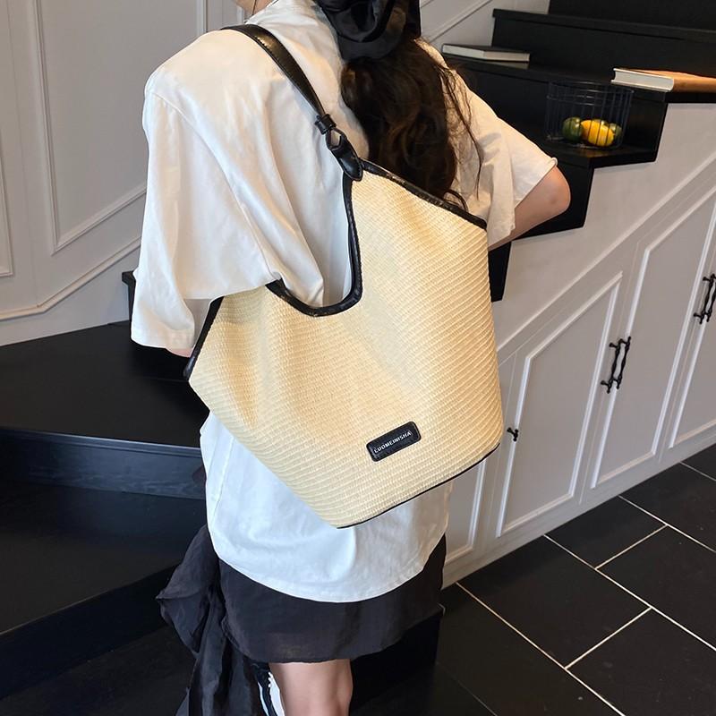 Bolso Tote de Verano Tejido de Gran Capacidad 2025 Nueva Moda Trendy Coreano Simple Elegante Casual Bolso de Hombro de Paja