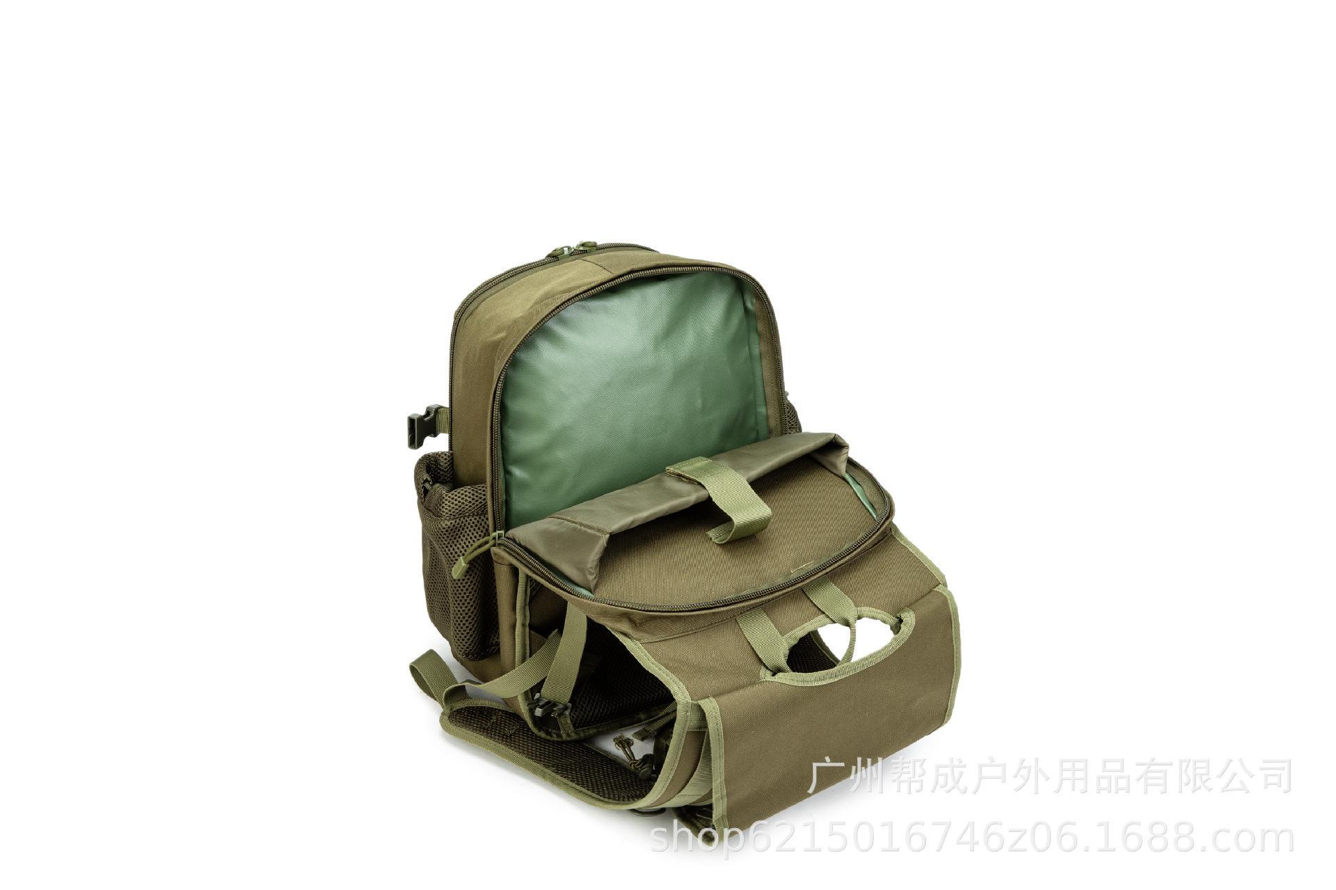 La parte trasera de la mochila utiliza un panel de malla transpirable para una buena disipación del calor. Está diseñada según la estructura del cuerpo humano para ahorrar esfuerzo al cargar peso.