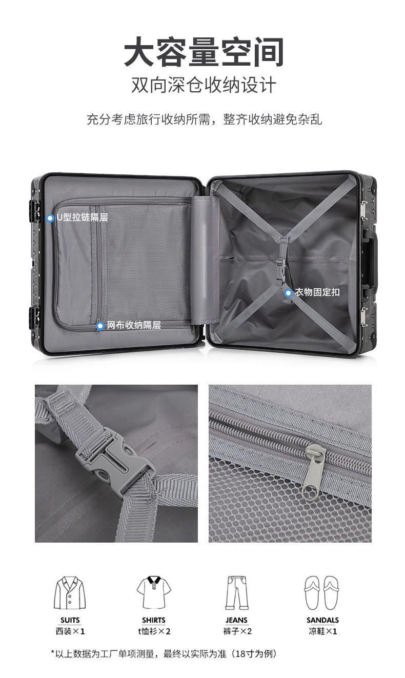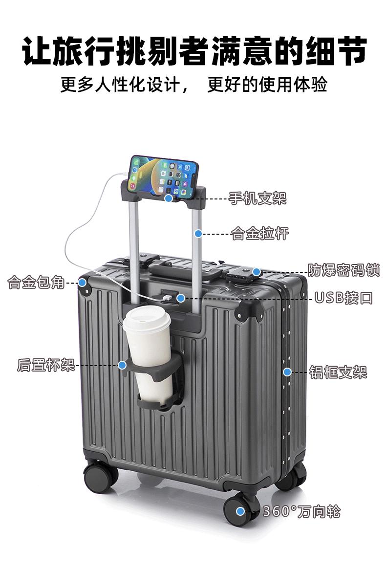 Maleta de Cabina de 18 pulgadas con Marco de Aluminio Nueva Maleta con Ruedas Maleta con Ruedas Maleta Caja con Contraseña Ligera Pequeña y Duradera