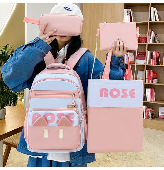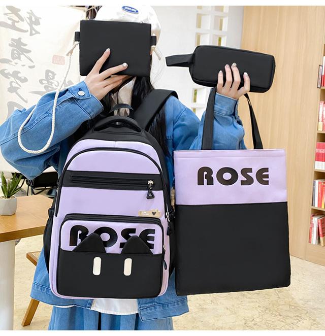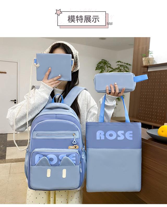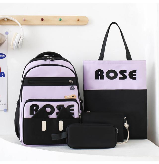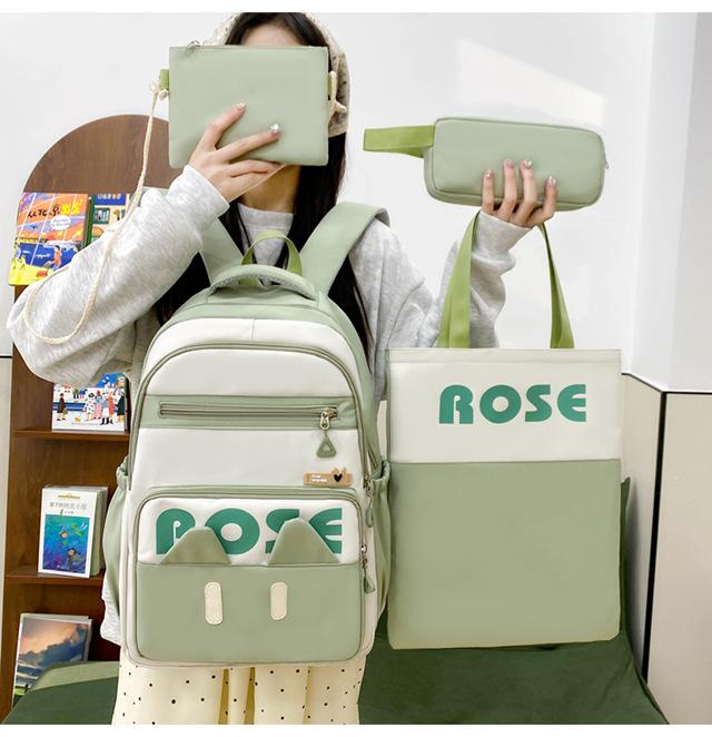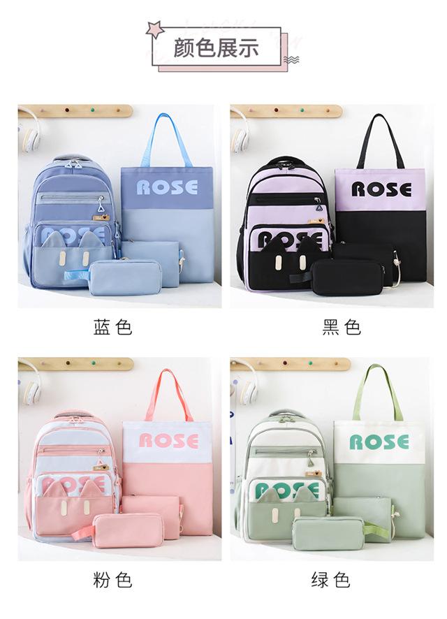 Mochila de Cuatro Piezas Estilo Campus Casual de Gran Capacidad Versión Coreana Estudiante de Secundaria Estudiante de Preparatoria