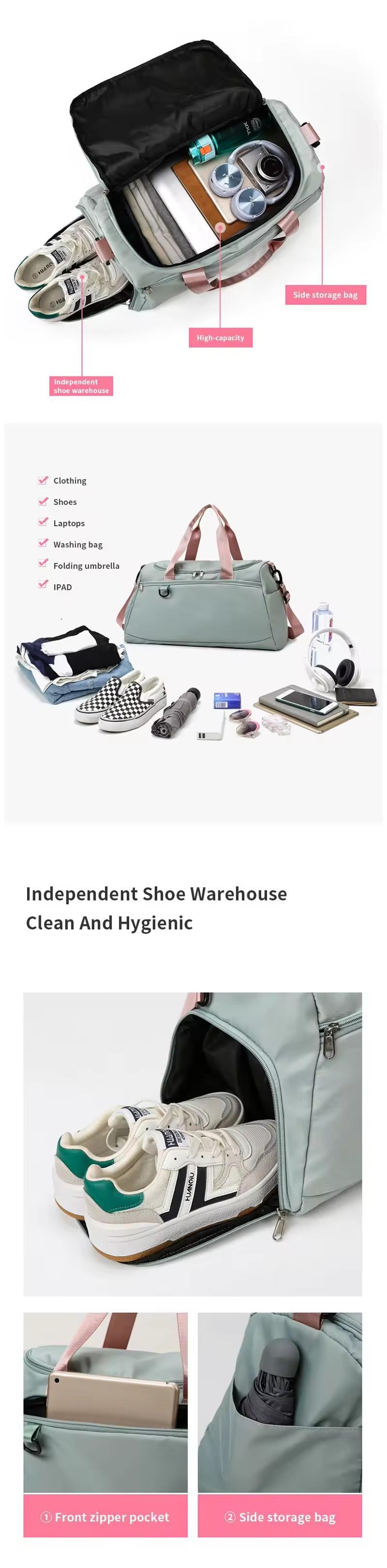 Bolsa Deportiva de Viaje Fitness de Gran Capacidad para Corta Distancia, Viaje de Negocios, Almacén Independiente para Zapatos, Portátil, Bandolera Cruzada, Bolsa de Contraste