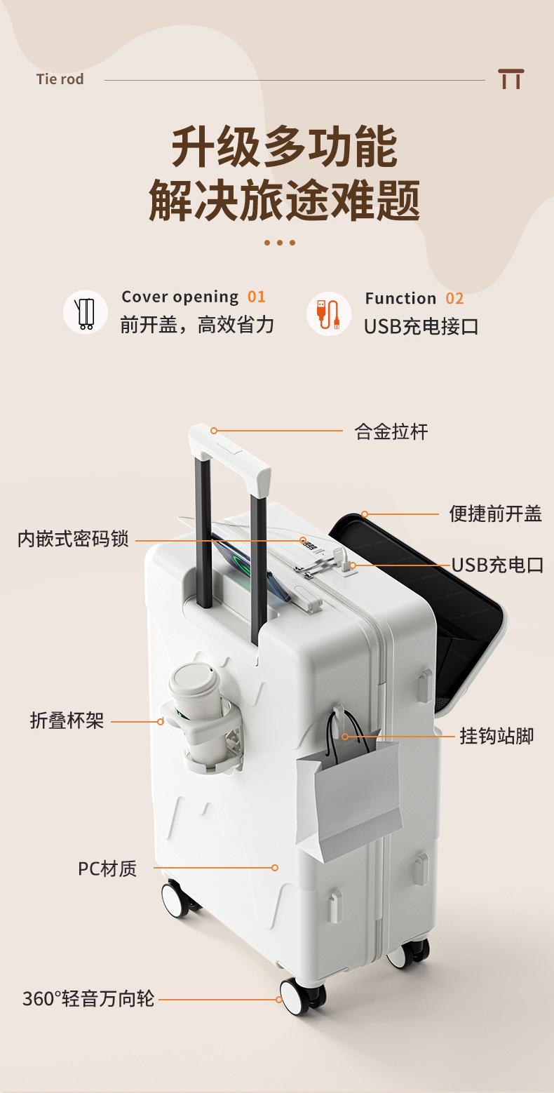 Maleta de Aspecto Elegante con Apertura Frontal, Maleta Trolley de Gran Capacidad, Maleta Robusta, Maleta de Mano con Ruedas Universales Resistentes al Desgaste para Estudiantes