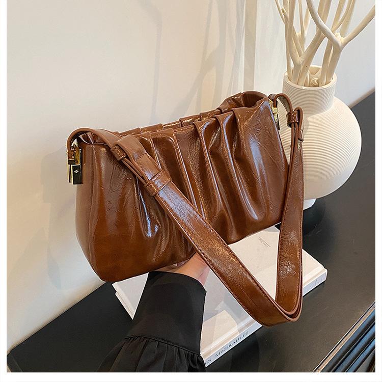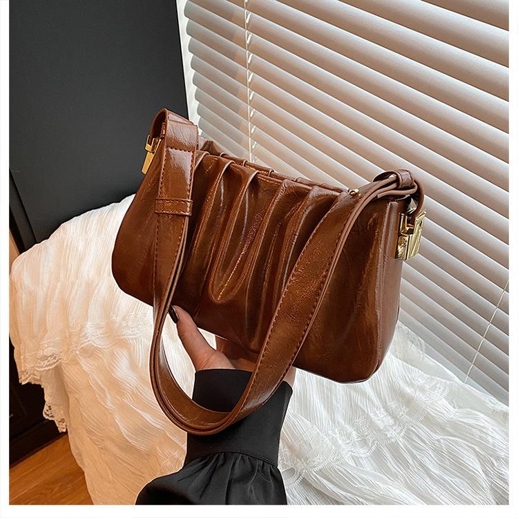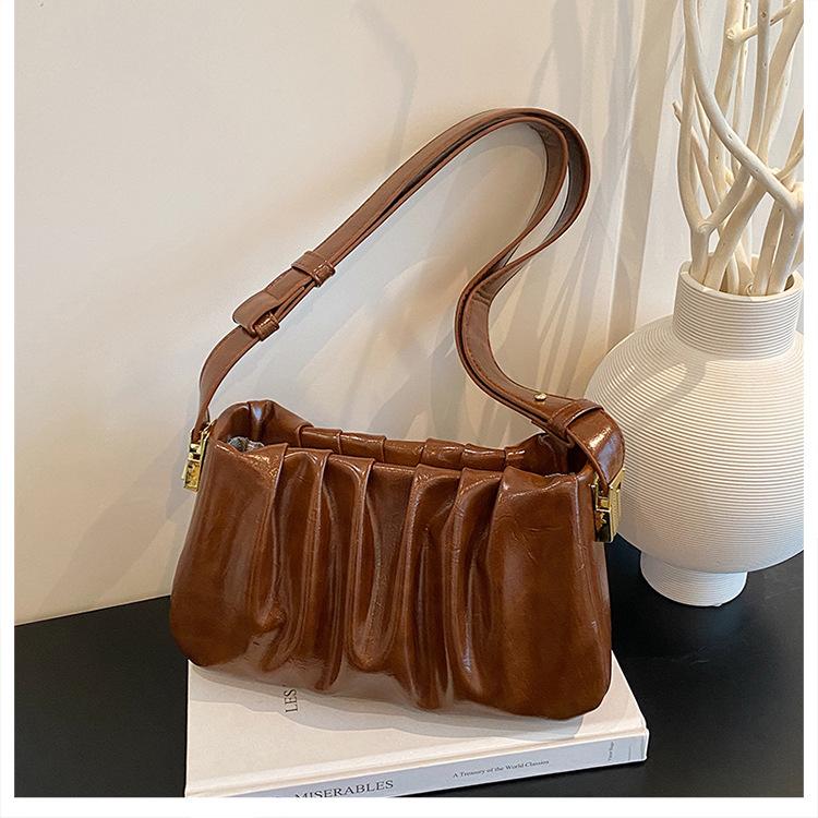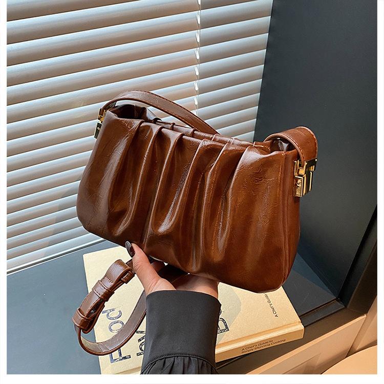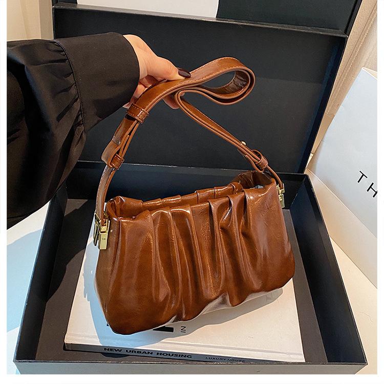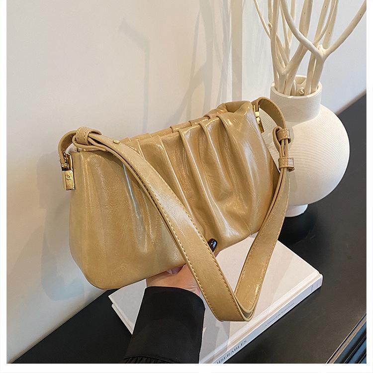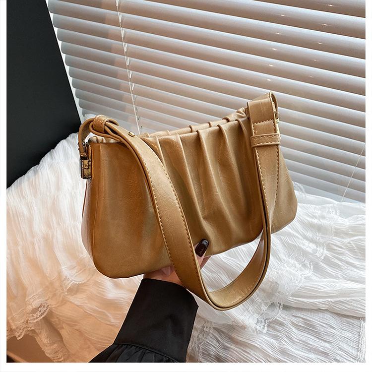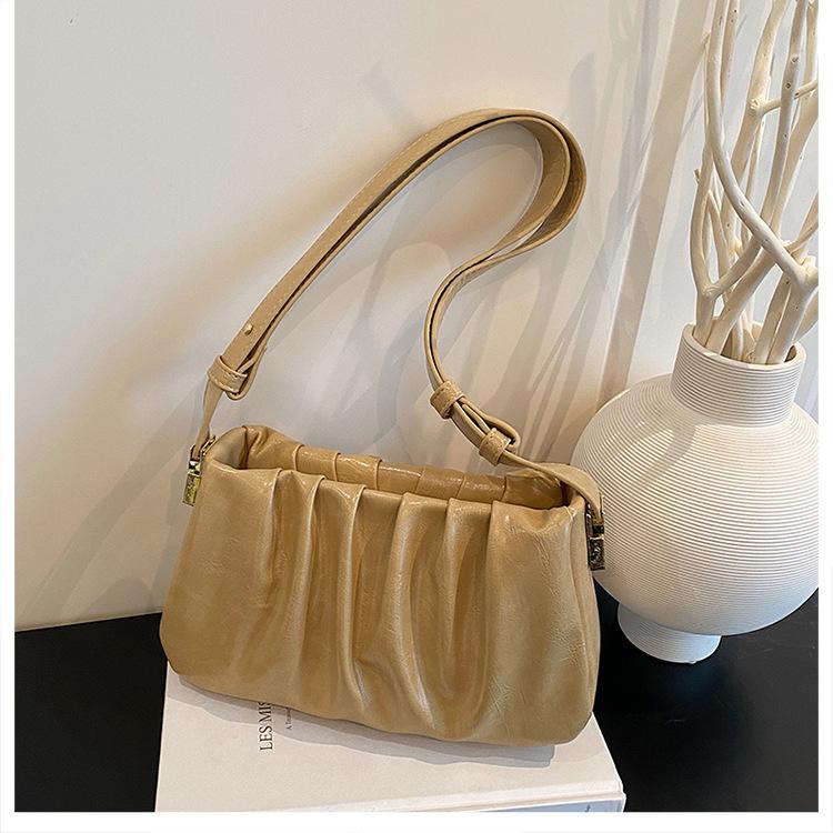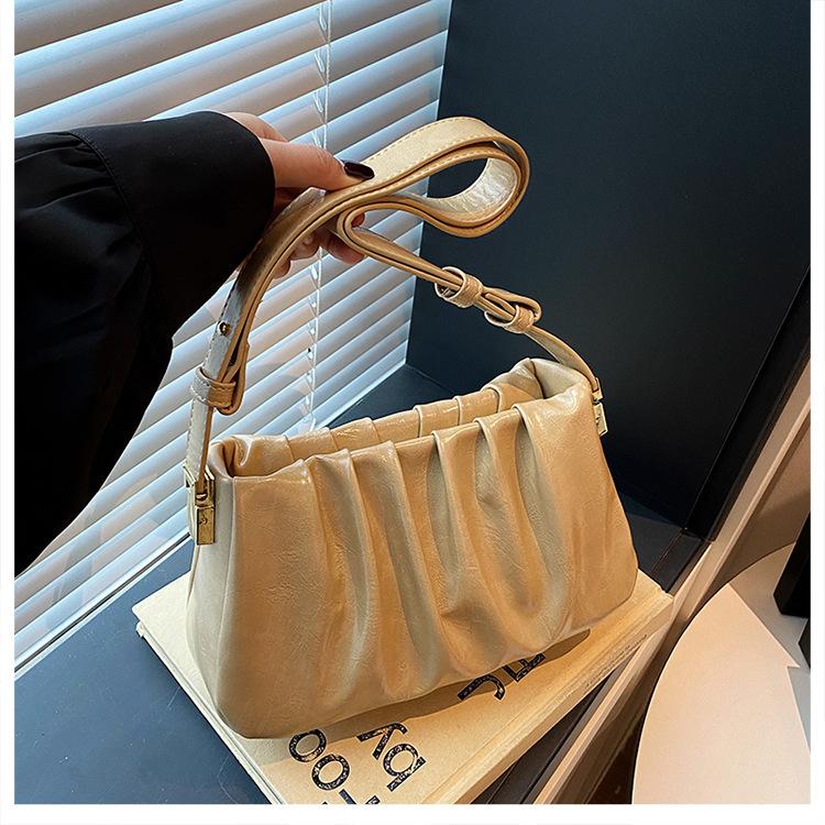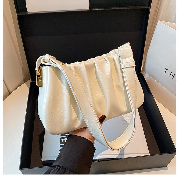 Bolso bandolera francés de nicho con textura para mujer 2024 Nuevo Simple Retro Bolso cuadrado pequeño plisado de hombro