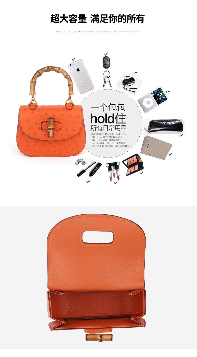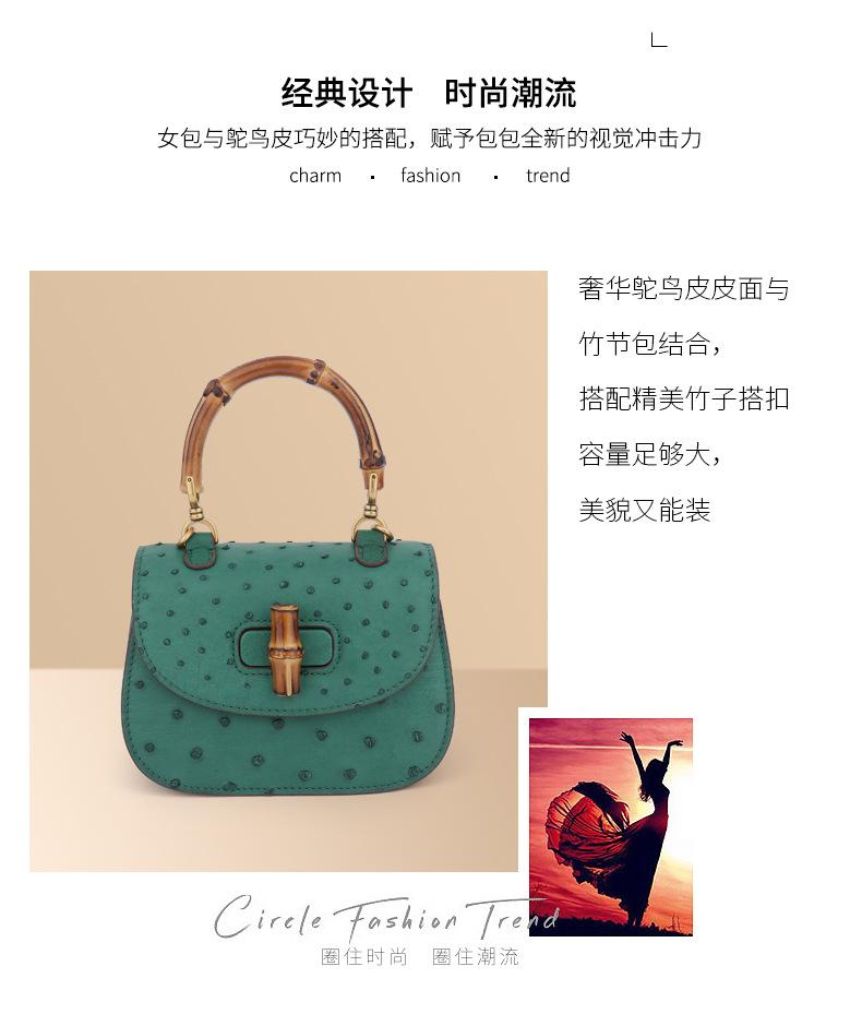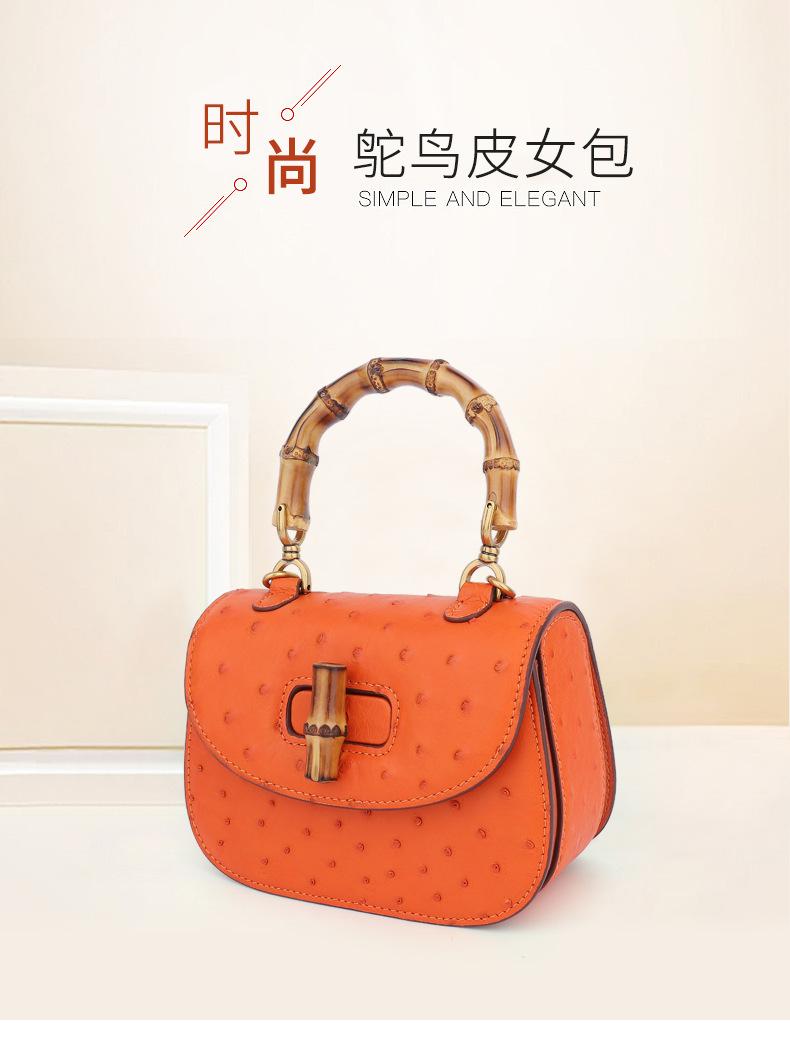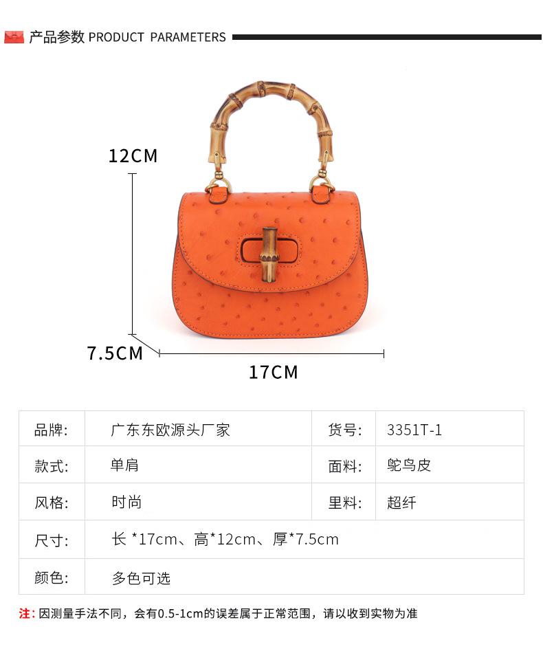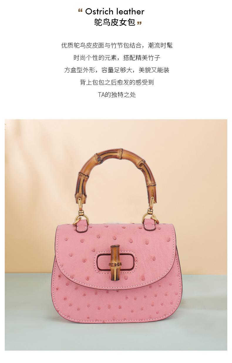 Bolso de Mujer Primavera 2025 Nuevo Diseño Nicho Bolso de Bambú Alta Textura Piel de Avestruz Fuente Fábrica Bolso de Mano