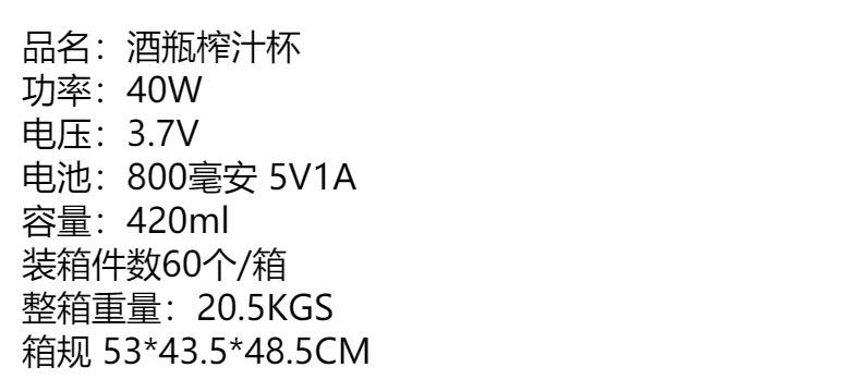 Mini Vaso para Jugo de Botella de Vino Transfronterizo USB Inalámbrico Multifuncional Portátil Exprimidor Exprimidor Vaso Eléctrico para Batidos