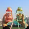 Verano nueva taza de agua de plástico transparente de gran vientre para doble bebida, hervidor deportivo para exteriores con popote, taza espacial