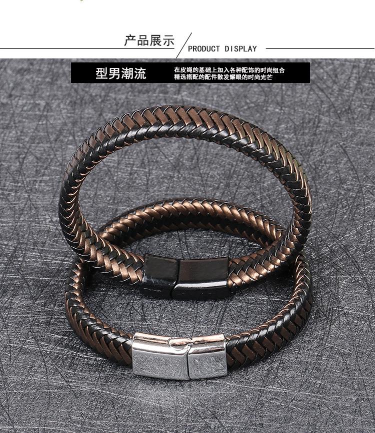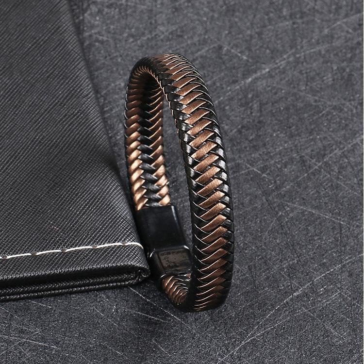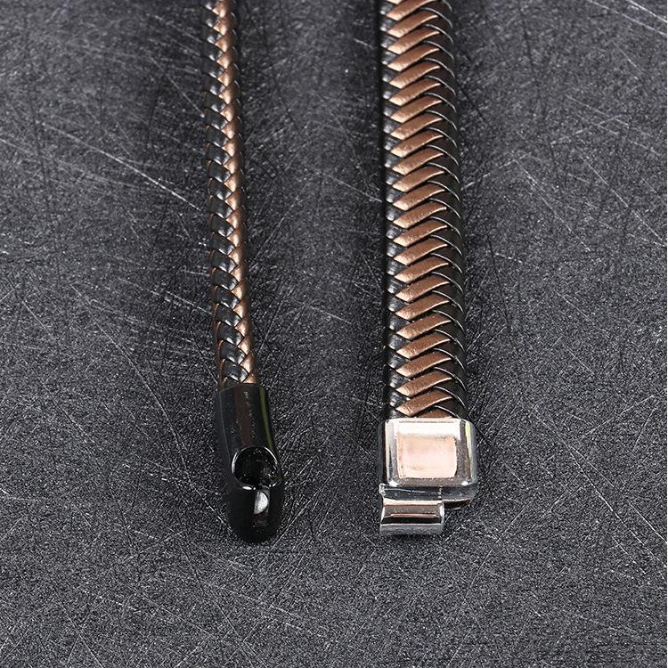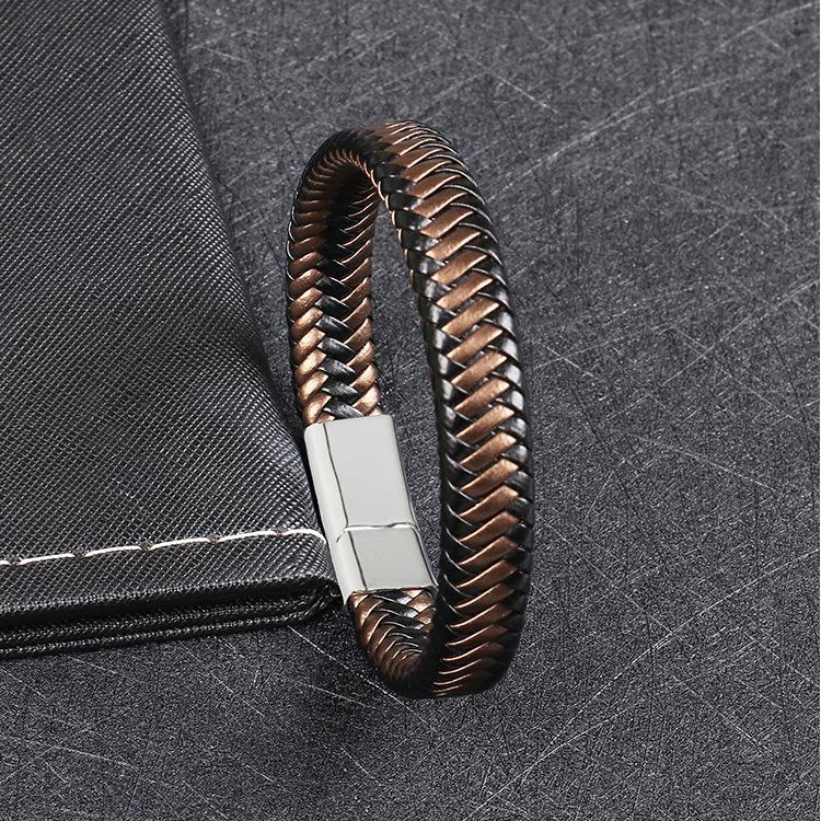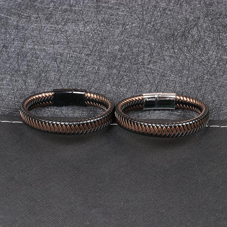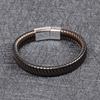 Pulsera creativa nueva para hombre de cuero tejido de 12 hebras, pulsera simple de tendencia, pulsera de aleación de acero inoxidable con hebilla magnética