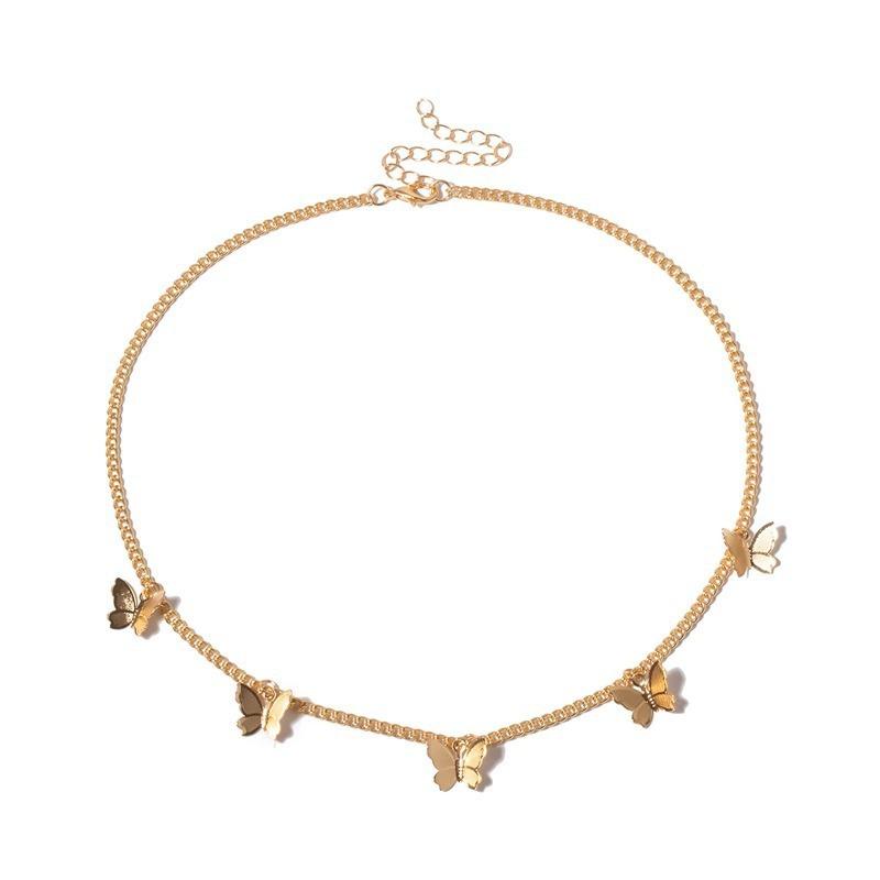Collar de Mariposa de Moda Europea y Americana Transfronteriza, Collar de Mariposa Elegante, Cadena Clavicular con Colgante de Mariposa Simple de Aleación