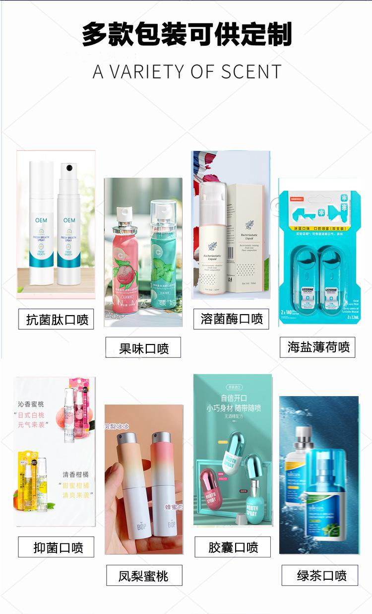 Portátil Elegante Spray de Bolsillo Fabricante OEM Multi-Aroma Refrescante Bucal para Mujeres Personalización OEM