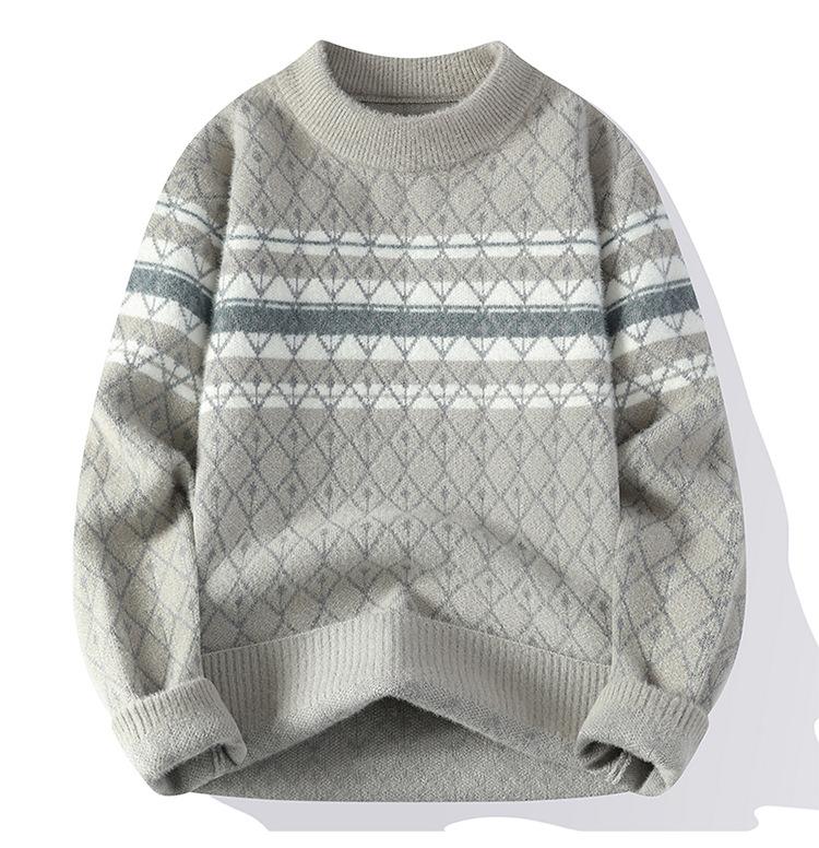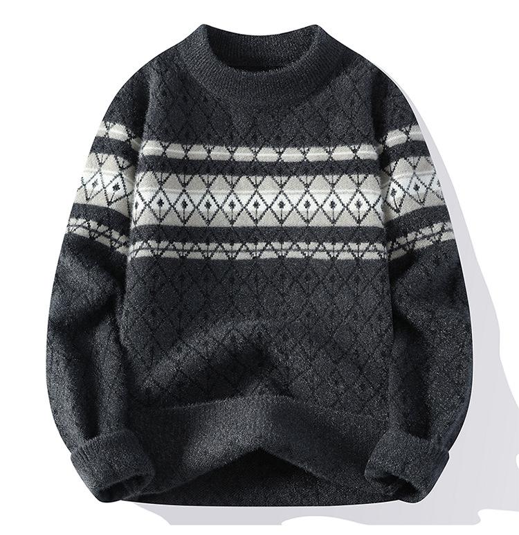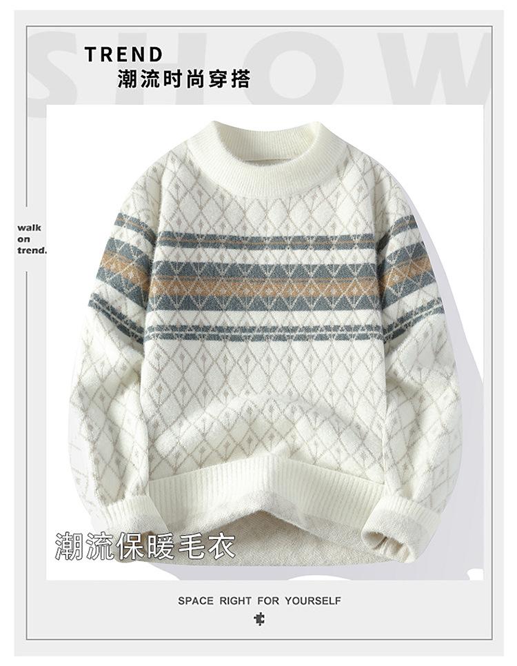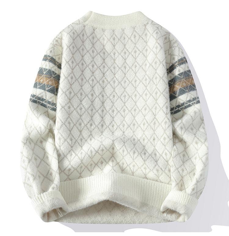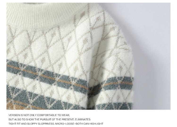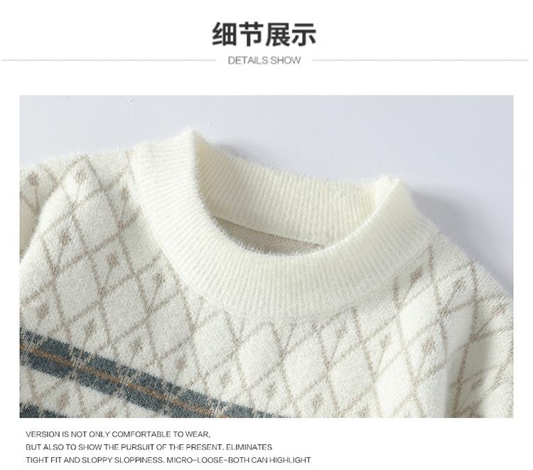 2025 Nuevo Otoño e Invierno para Hombre Suéter Grueso Versátil de Moda Tejido de Visón Sintético Top Jersey de Cuello Redondo