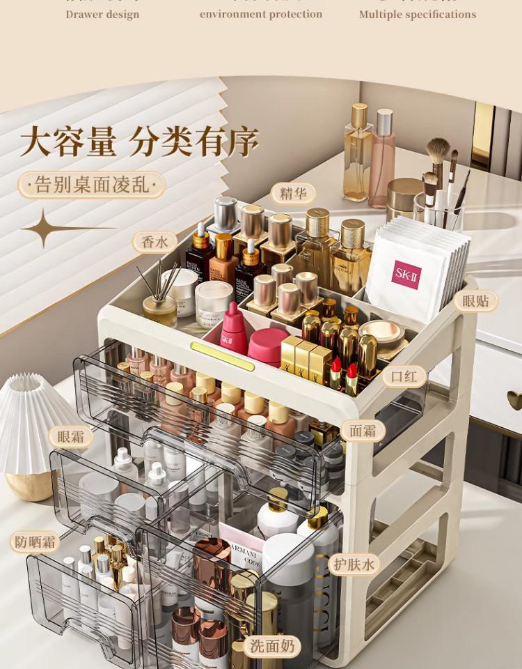 Caja de almacenamiento de cosméticos nueva, de gran capacidad, para escritorio, a prueba de polvo, para lápiz labial, cuidado de la piel, tocador, estante de almacenamiento tipo cajón para celebridades de Internet