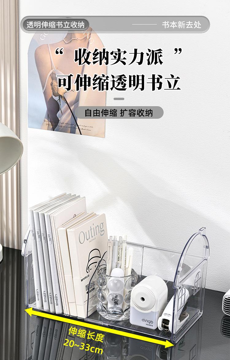 Soporte retráctil para libros Transparente Almacenamiento de escritorio para estudiantes Artefacto para libros Estante de almacenamiento engrosado para libros infantiles