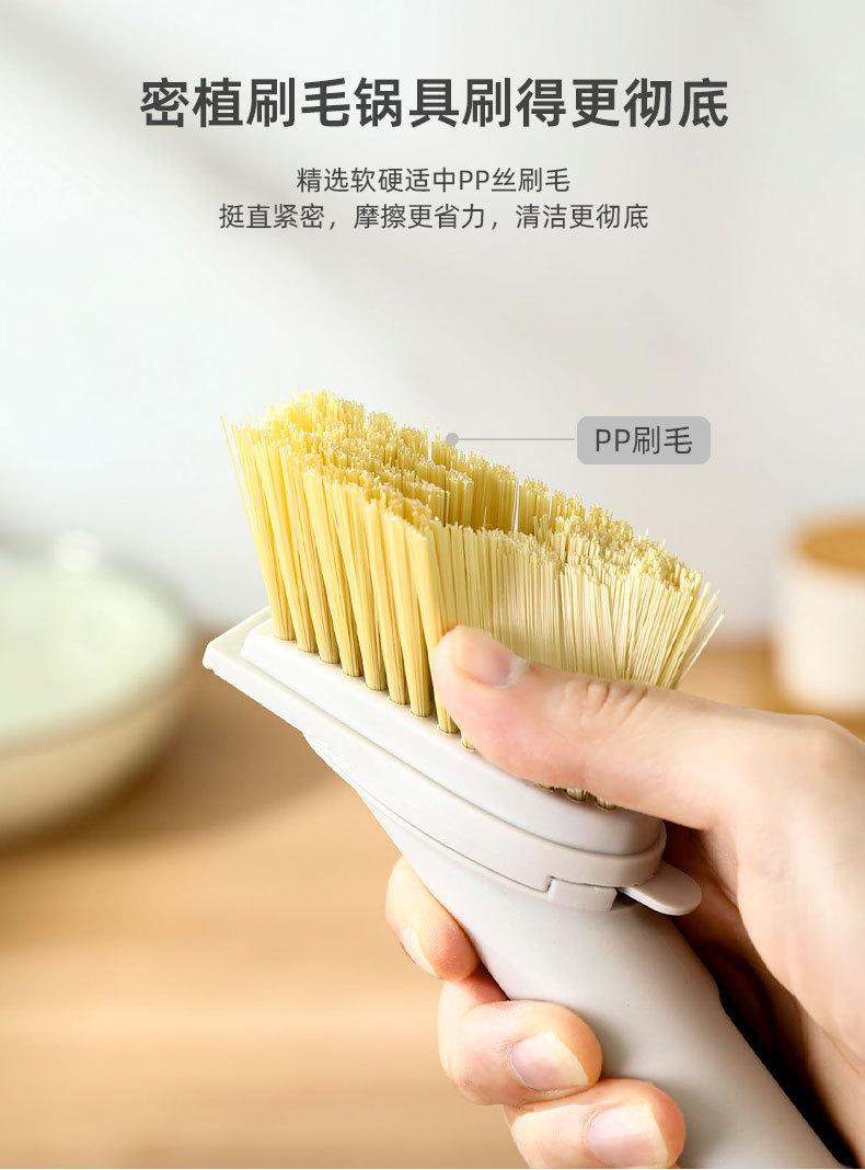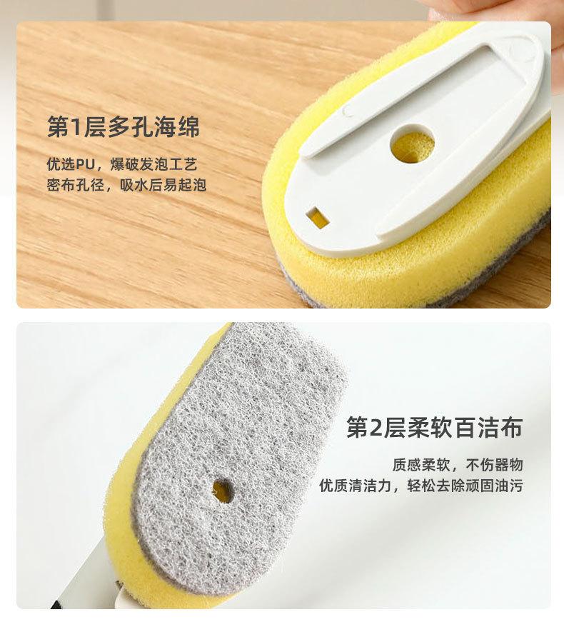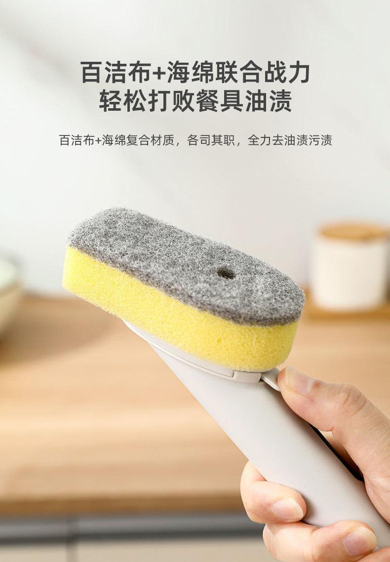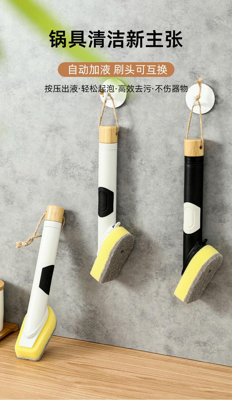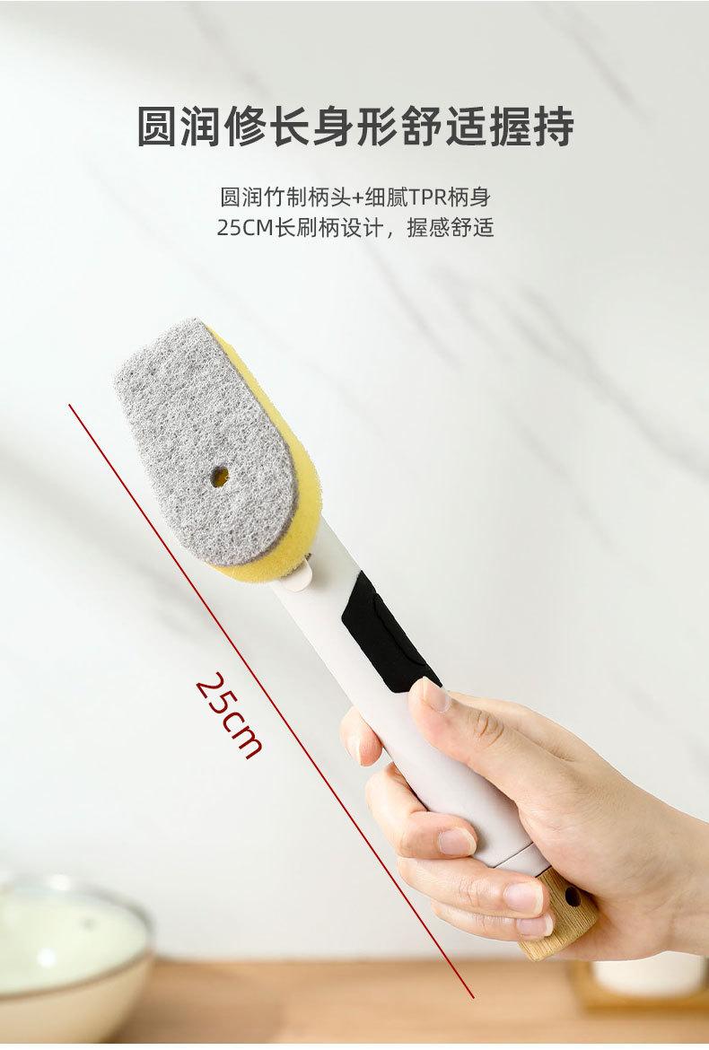 Cepillo para Lavar Ollas con Dispensador de Líquido, Cepillo para Limpiar Ollas y Platos, Cepillo para Lavar Platos con Esponja y Mango Largo para Cocina Casera con Dispensación Automática de Líquido