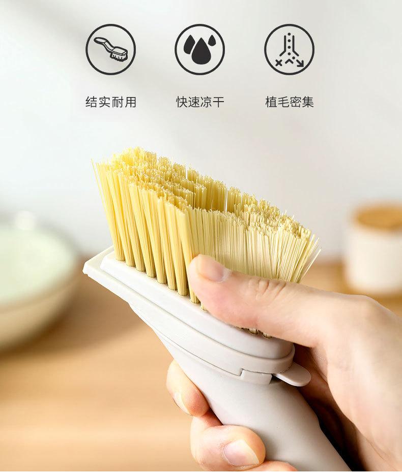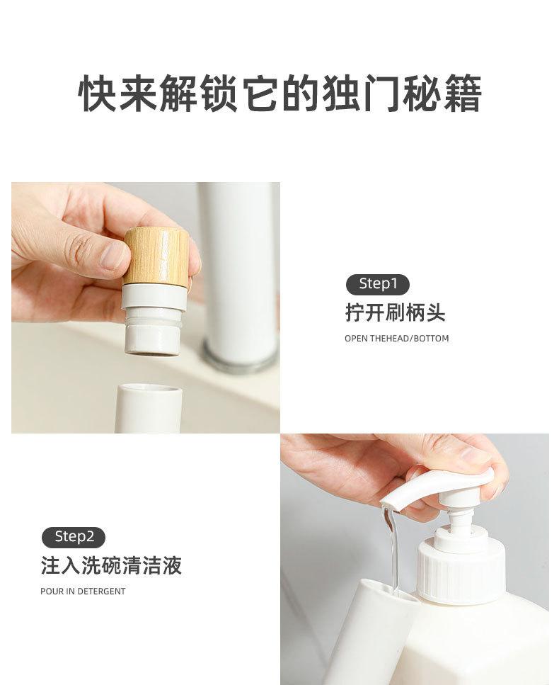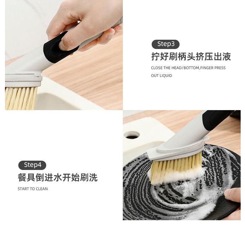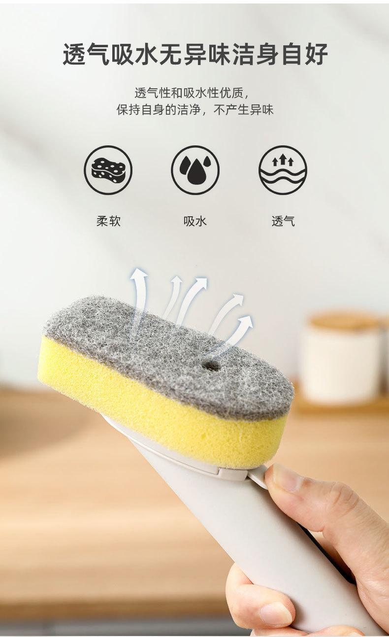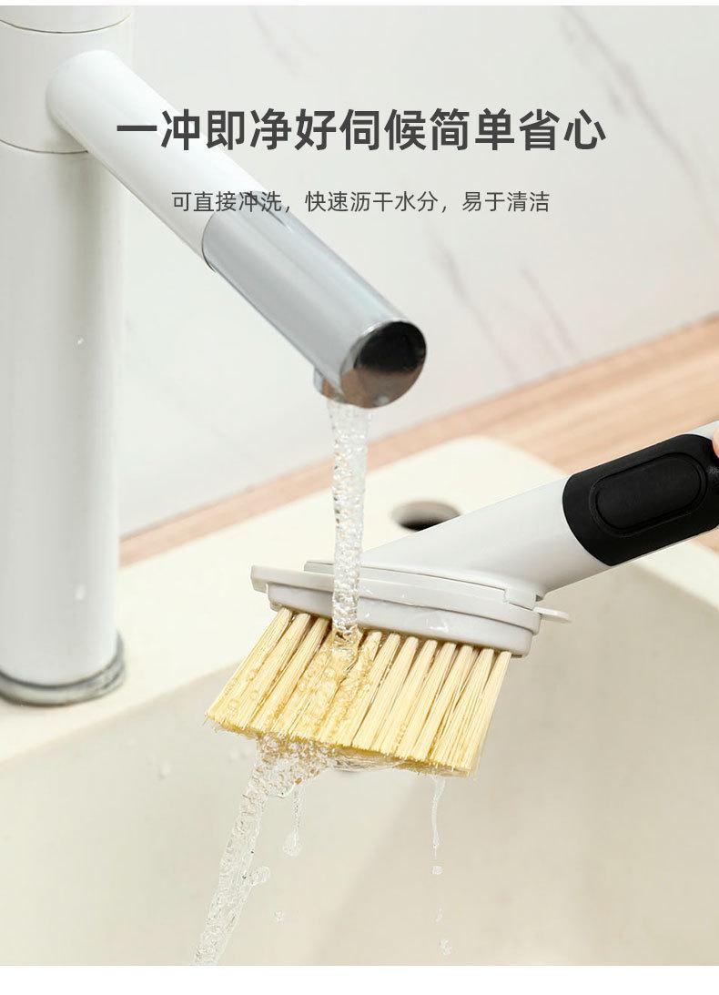 Cepillo para Lavar Ollas con Dispensador de Líquido, Cepillo para Limpiar Ollas y Platos, Cepillo para Lavar Platos con Esponja y Mango Largo para Cocina Casera con Dispensación Automática de Líquido