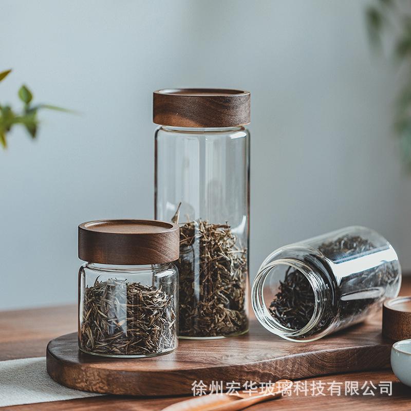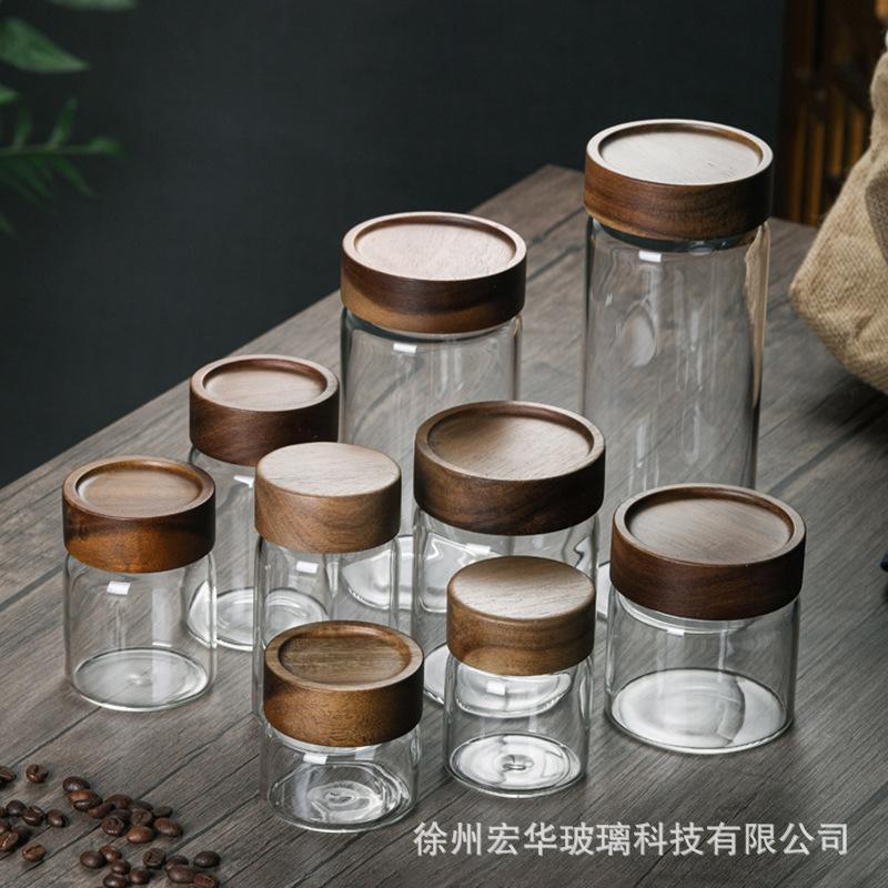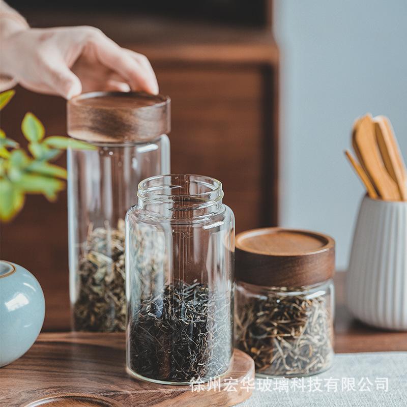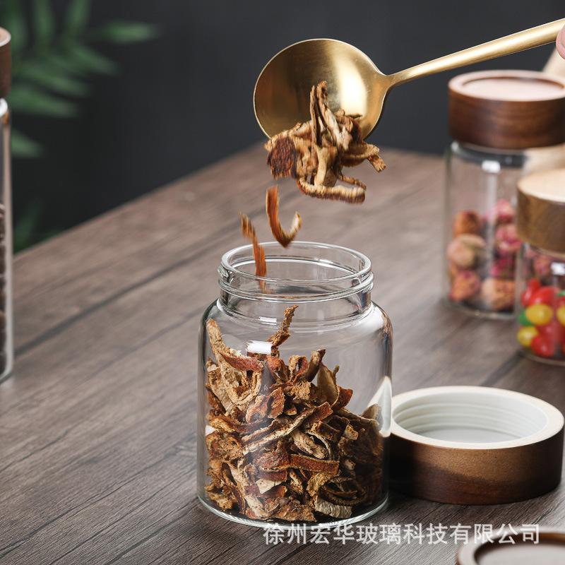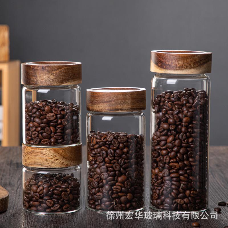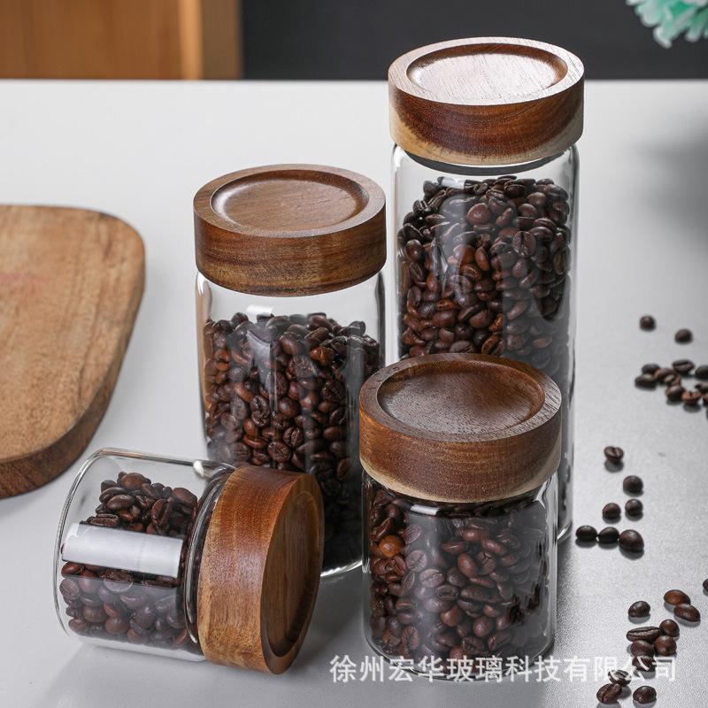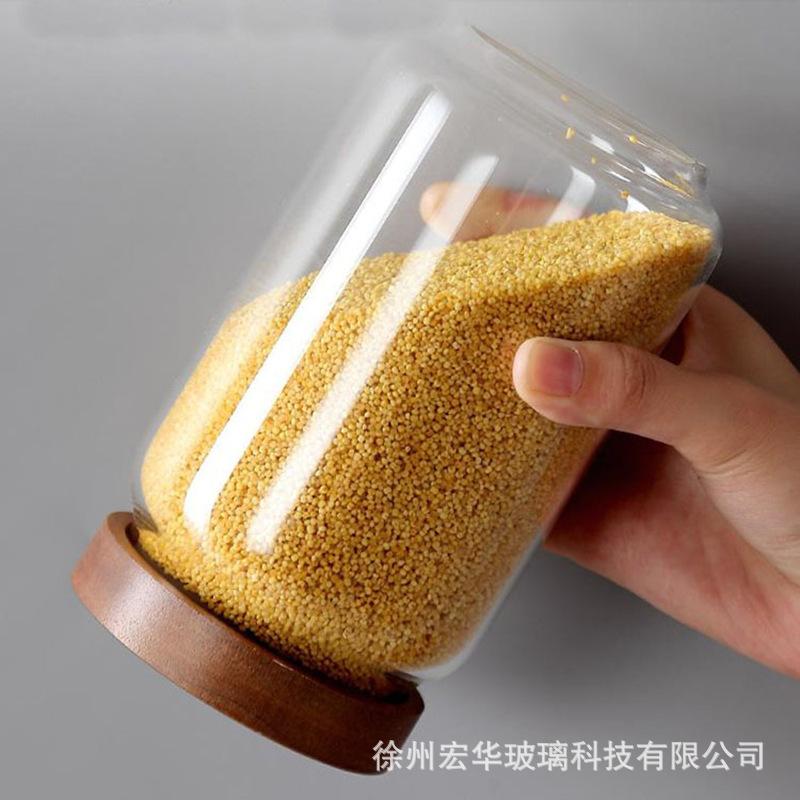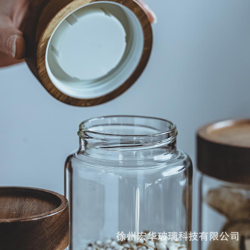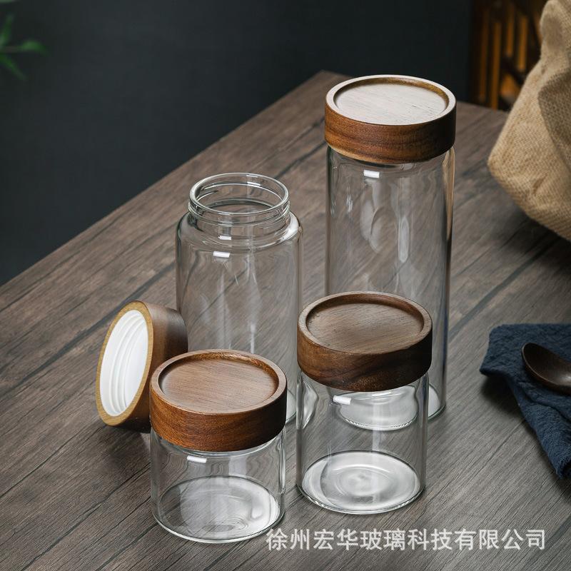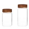 【Tapa de Madera de Acacia con Boca de Seda Tarro de Almacenamiento de Vidrio Borosilicatado Alto】