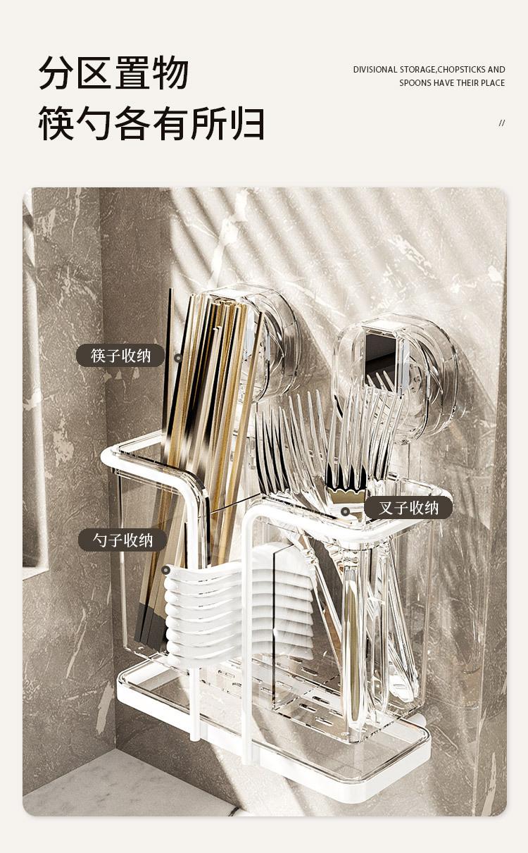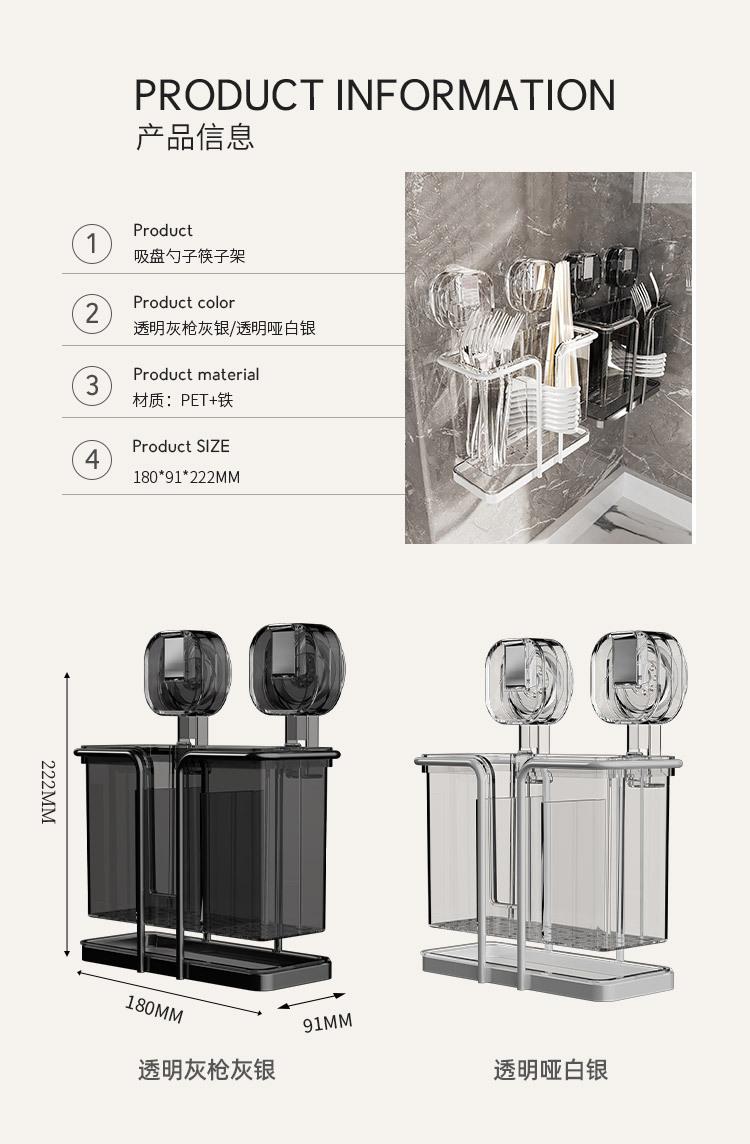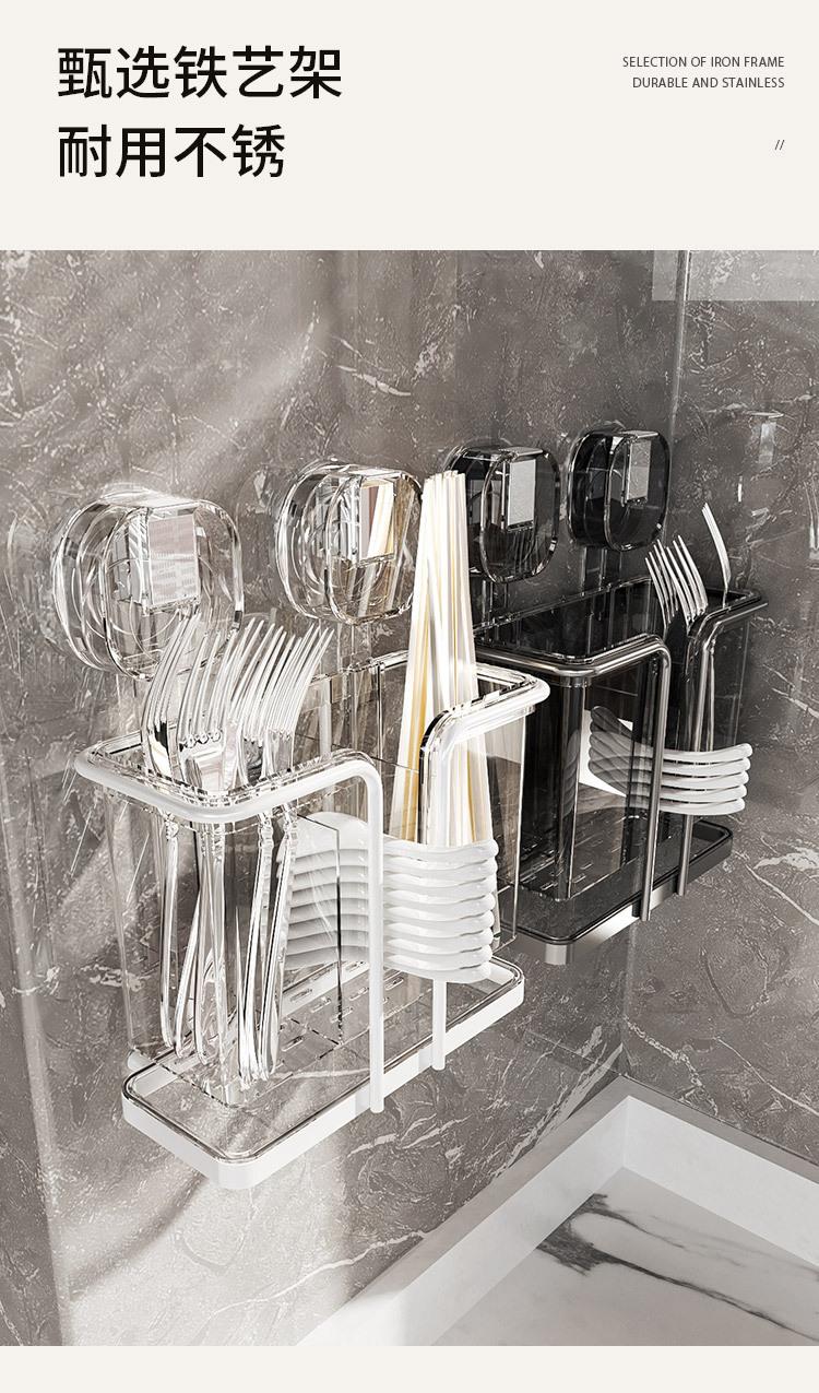 Caja de Almacenamiento de Cucharas y Palillos de Hierro con Ventosa para Cocina, Soporte de Almacenamiento para Palillos de Drenaje Doméstico Montado en la Pared, Modelo Nuevo