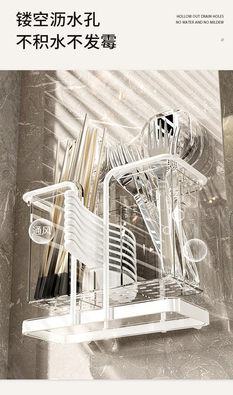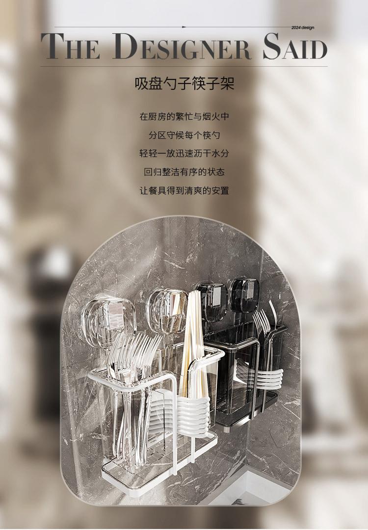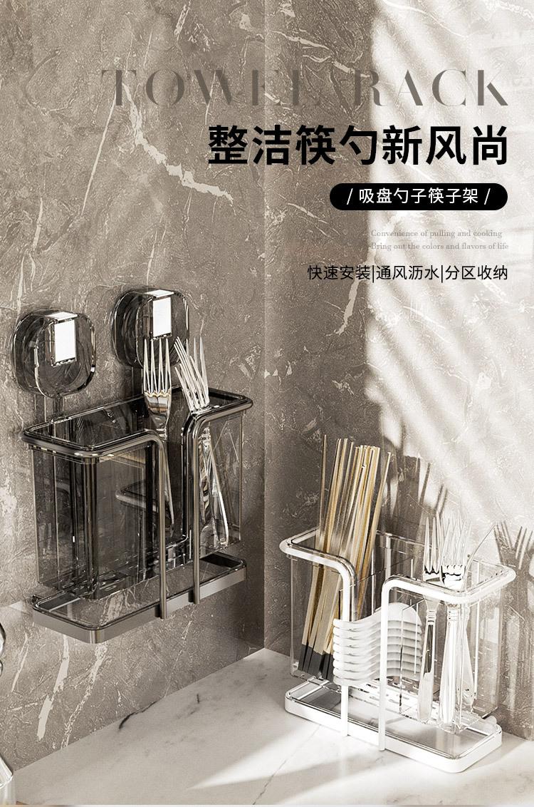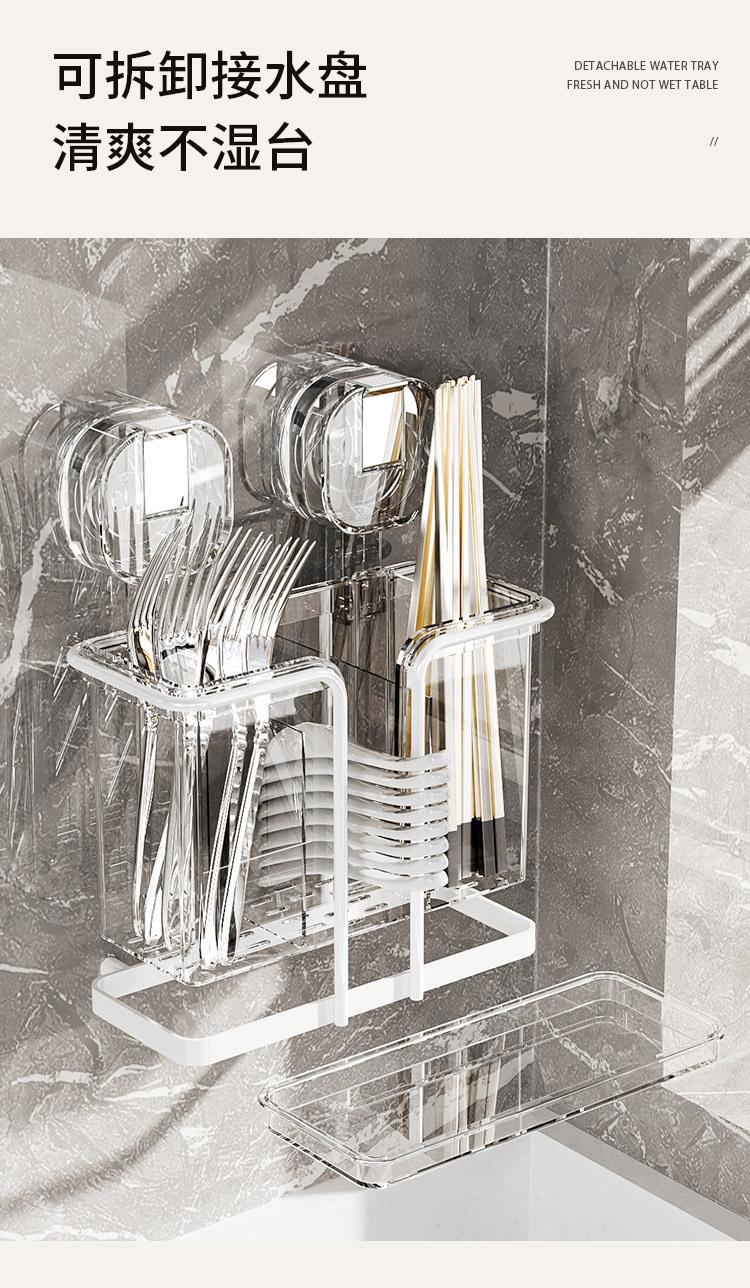 Caja de Almacenamiento de Cucharas y Palillos de Hierro con Ventosa para Cocina, Soporte de Almacenamiento para Palillos de Drenaje Doméstico Montado en la Pared, Modelo Nuevo