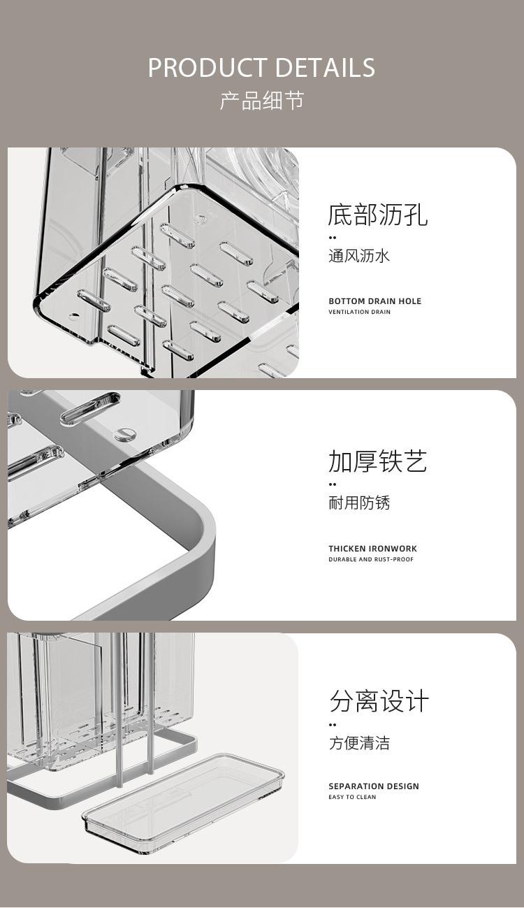 Wrought iron chopsticks and spoon holder-transparent gray gun gray silver