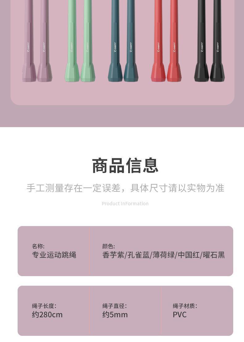 Pen rod jump rope-basic style-black, Pen rod skipping rope-basic style-pink, Pen rod jump rope-basic model-yel...