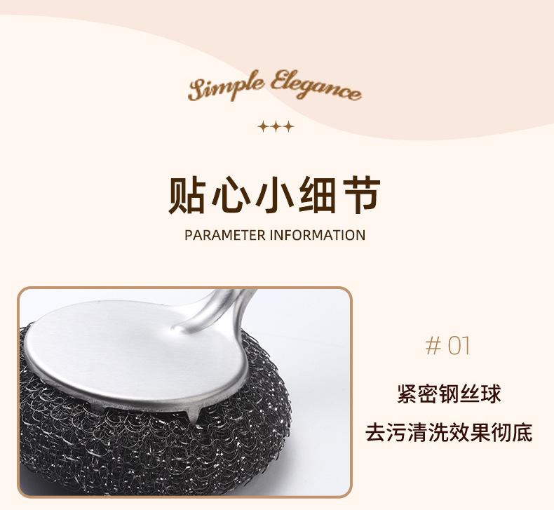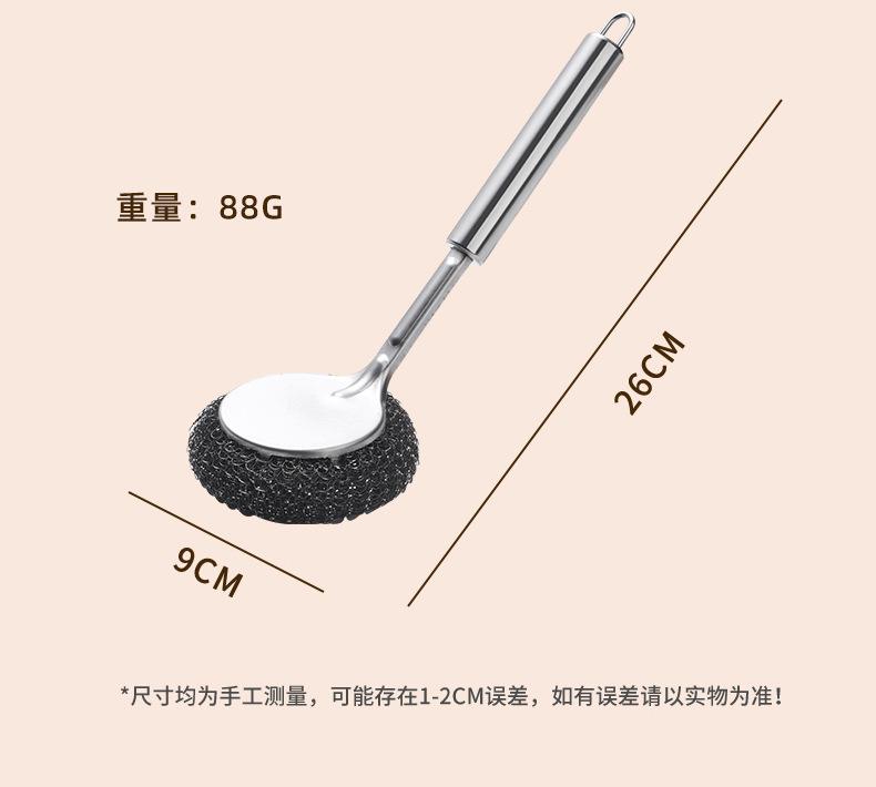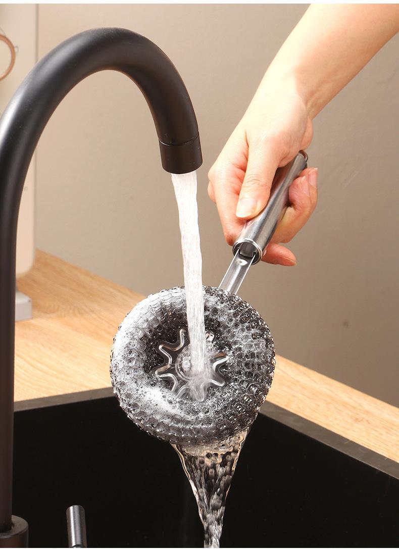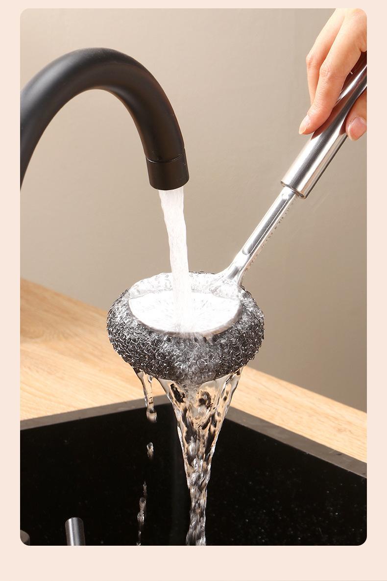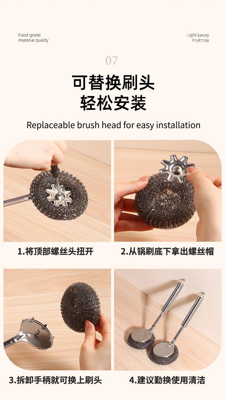 Cepillo para Lavar Ollas de Acero Inoxidable Bola de Alambre de Acero Mango Largo Cabezal de Cepillo Reemplazable Cepillo de Limpieza para Lavar Platos de Cocina Artefacto de Descontaminación Cepillo de Trípode