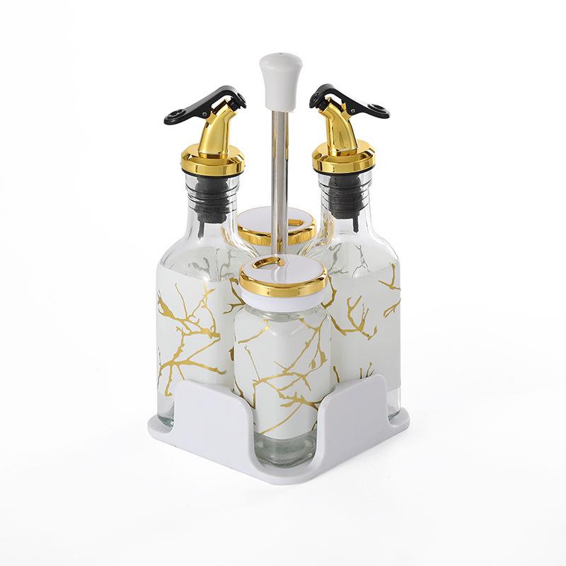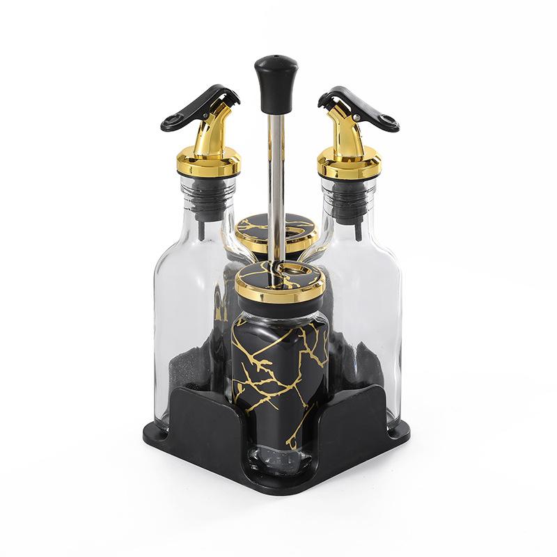 Black marble 10.6*10.8*18.5cm, White marble 10.6*10.8*18.5cm, Transparent oil bottle + can 11.8*12*24.2cm, Bla...