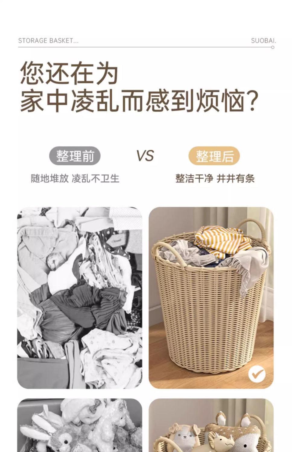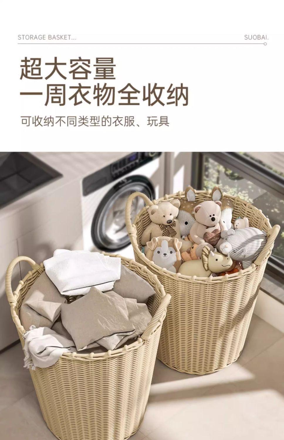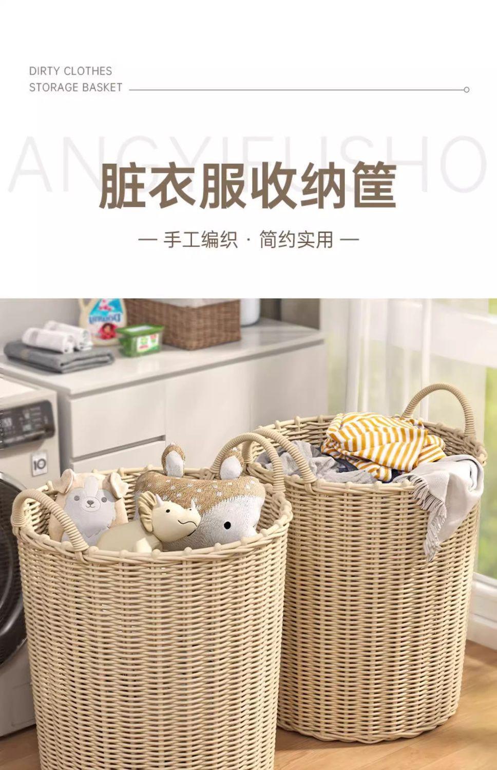 Cesto de Almacenamiento de Ropa Sucia Extra Grande Ratán Plástico Cesto de Lavandería Doméstico Cubo de Almacenamiento de Juguetes Cesto de Ropa Tejido