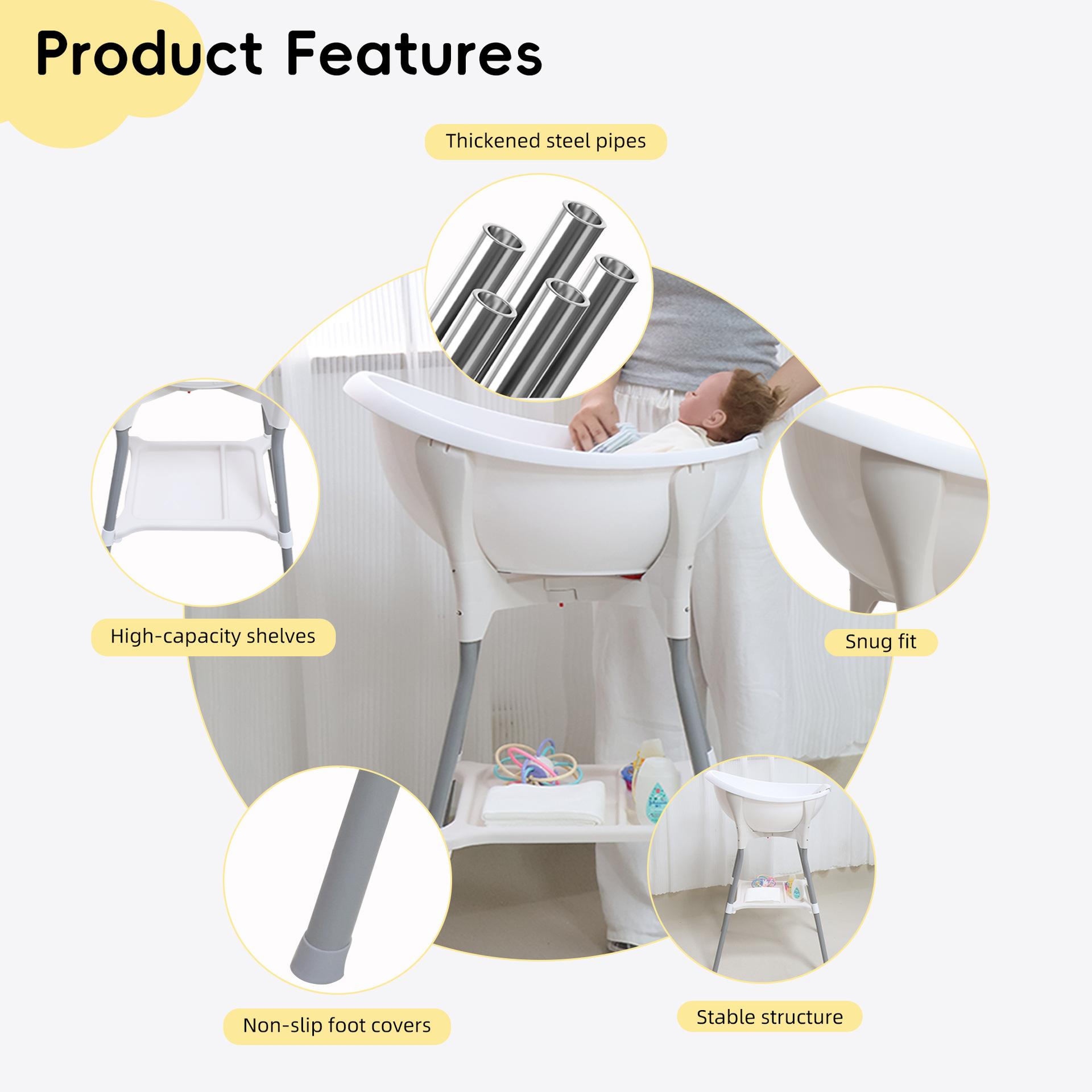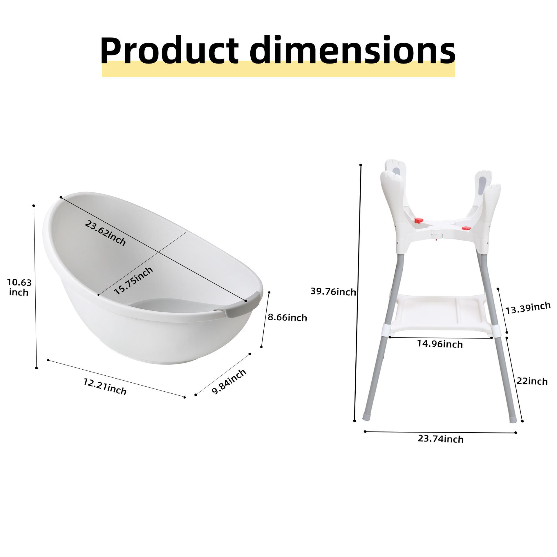 Especificaciones y dimensiones del producto: Soporte 60.3*55.9*101cm Incluyendo bañera 63.1*55.9*106.4cm