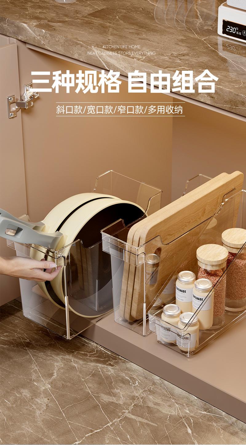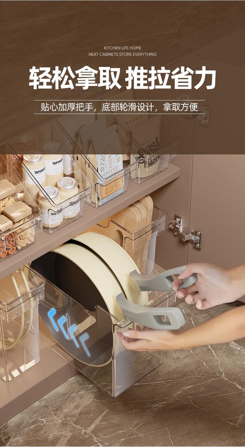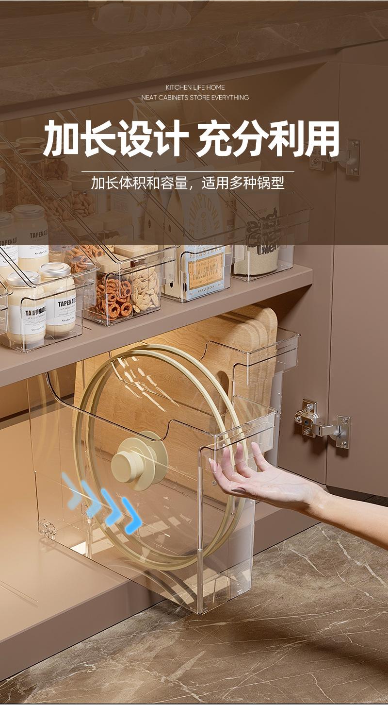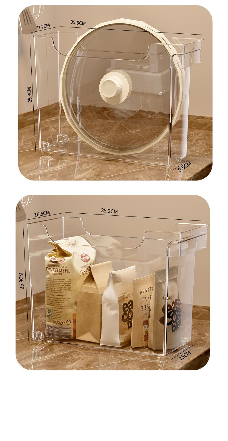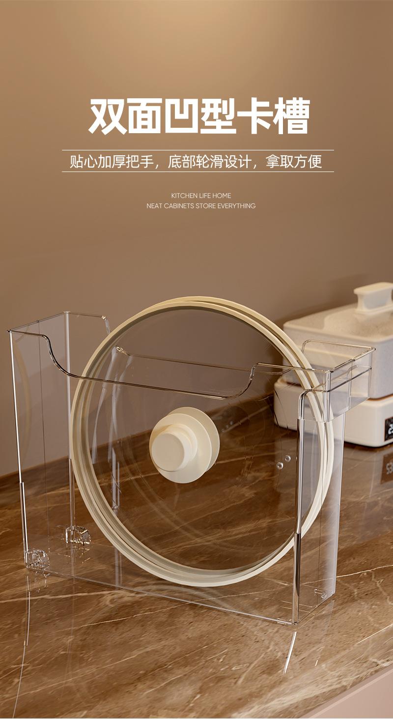 Estante de almacenamiento para tapas de ollas, artefacto de cocina, estante de almacenamiento de ollas de plástico transparente, gabinete con ruedas, caja de almacenamiento, estante de almacenamiento
