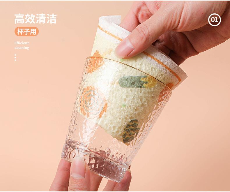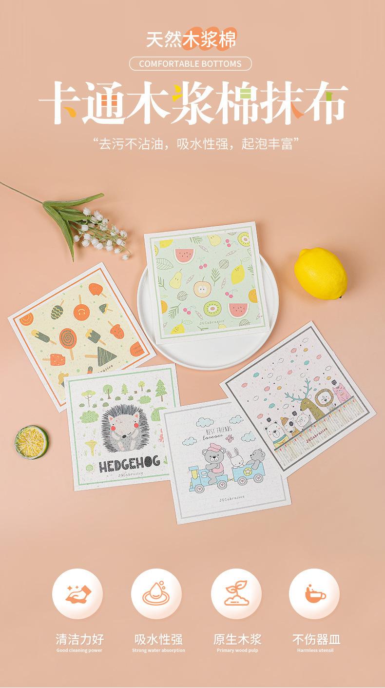 Trapo de cocina de algodón de pulpa de madera absorbente de dibujos animados Esponja descontaminante Paño de estropajo Paño para lavar platos de fibra de madera Toalla para lavar platos al por mayor