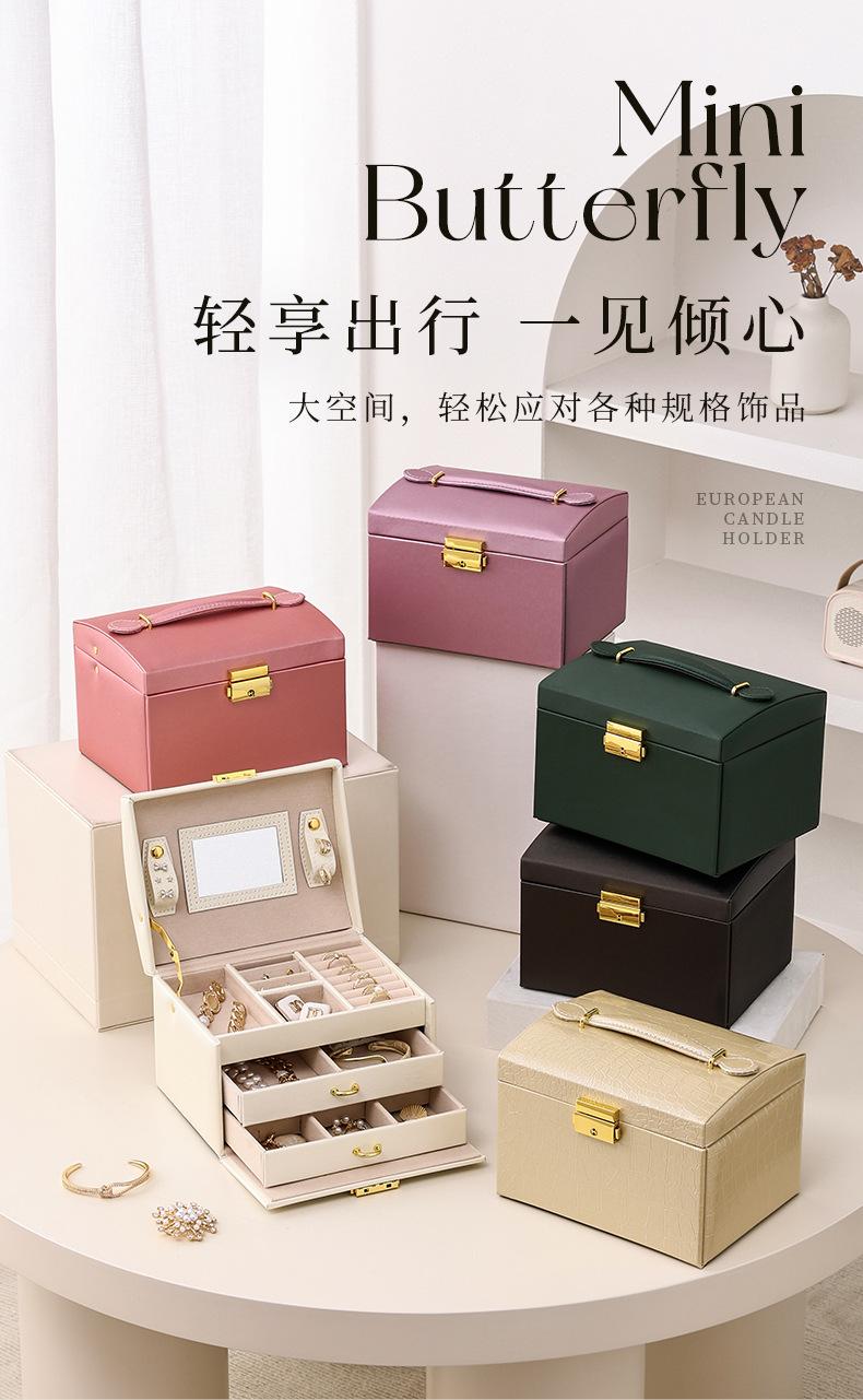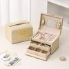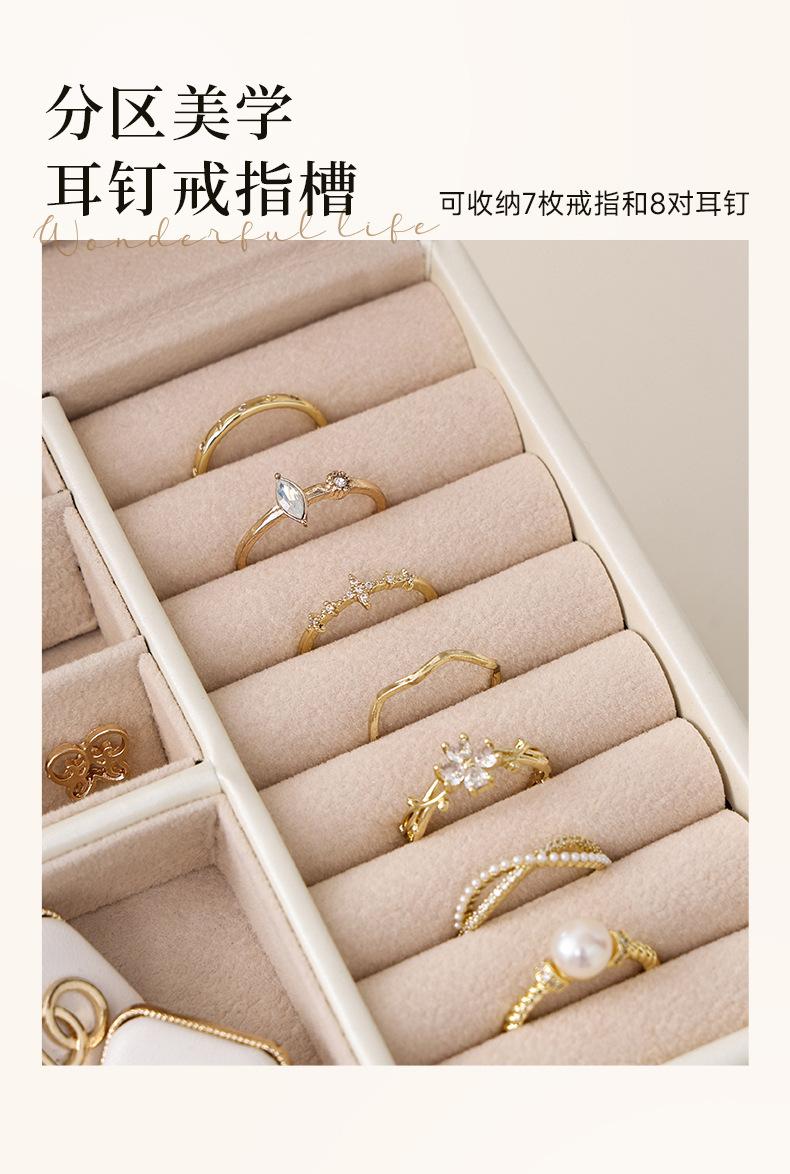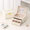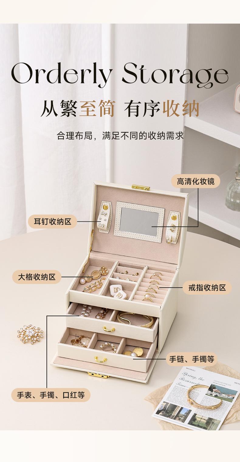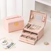 Caja de joyería portátil transfronteriza de tres capas de gran capacidad, caja de joyería con cajón de cuero PU, caja de almacenamiento de joyas para anillos, aretes
