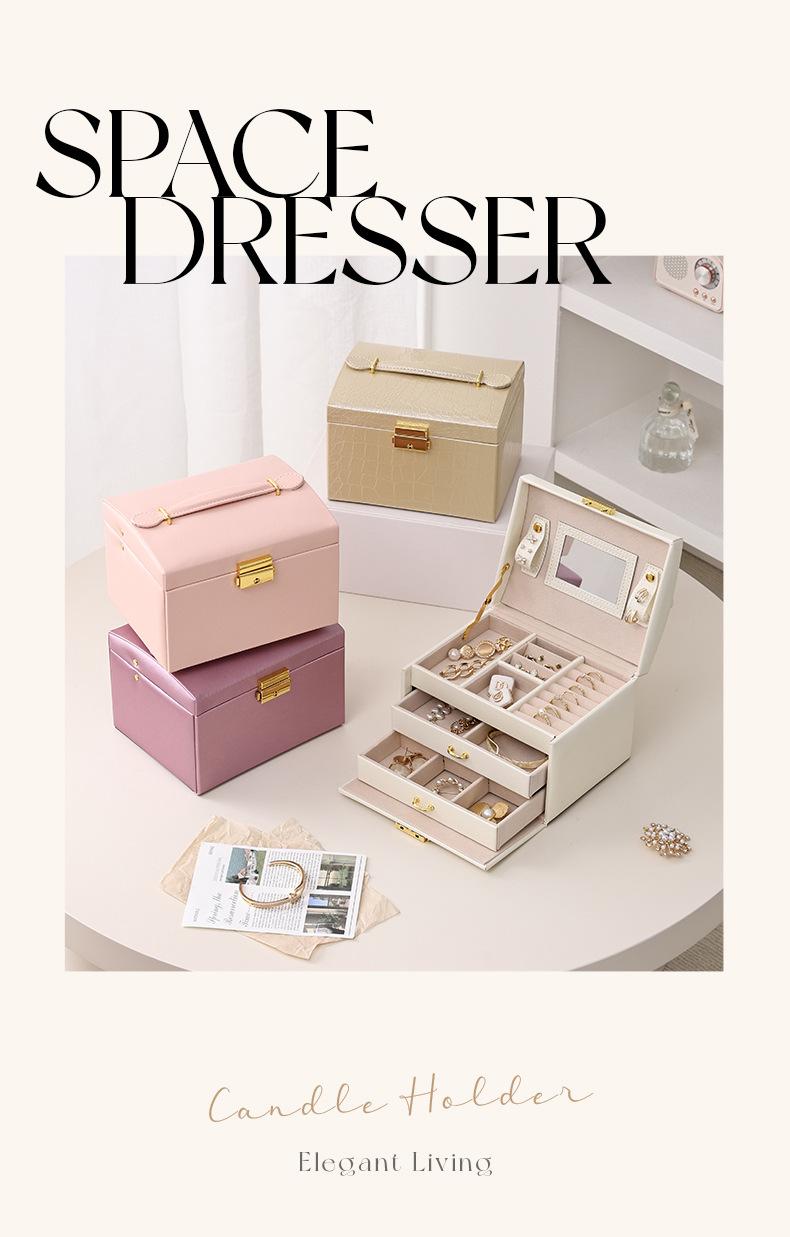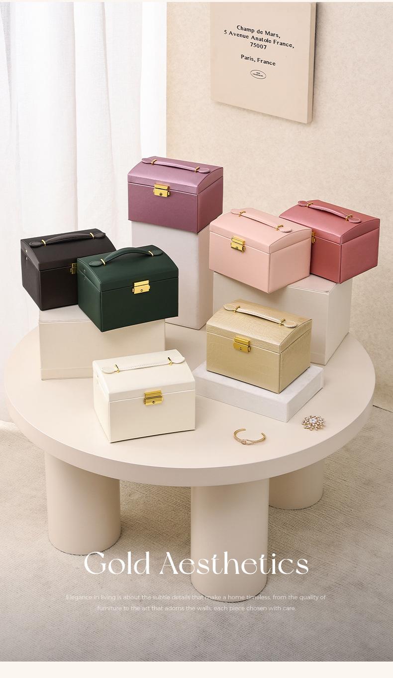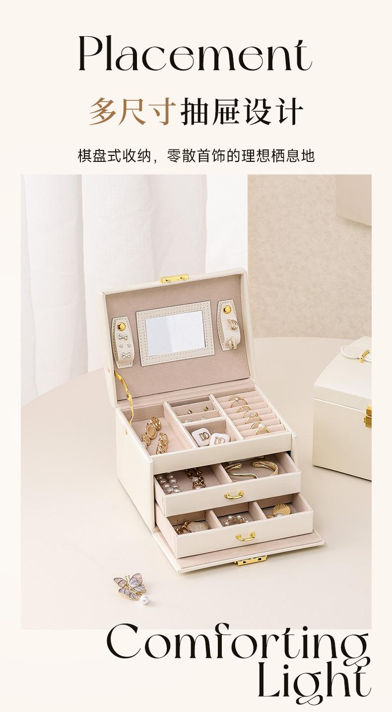 Caja de joyería portátil transfronteriza de tres capas de gran capacidad, caja de joyería con cajón de cuero PU, caja de almacenamiento de joyas para anillos, aretes