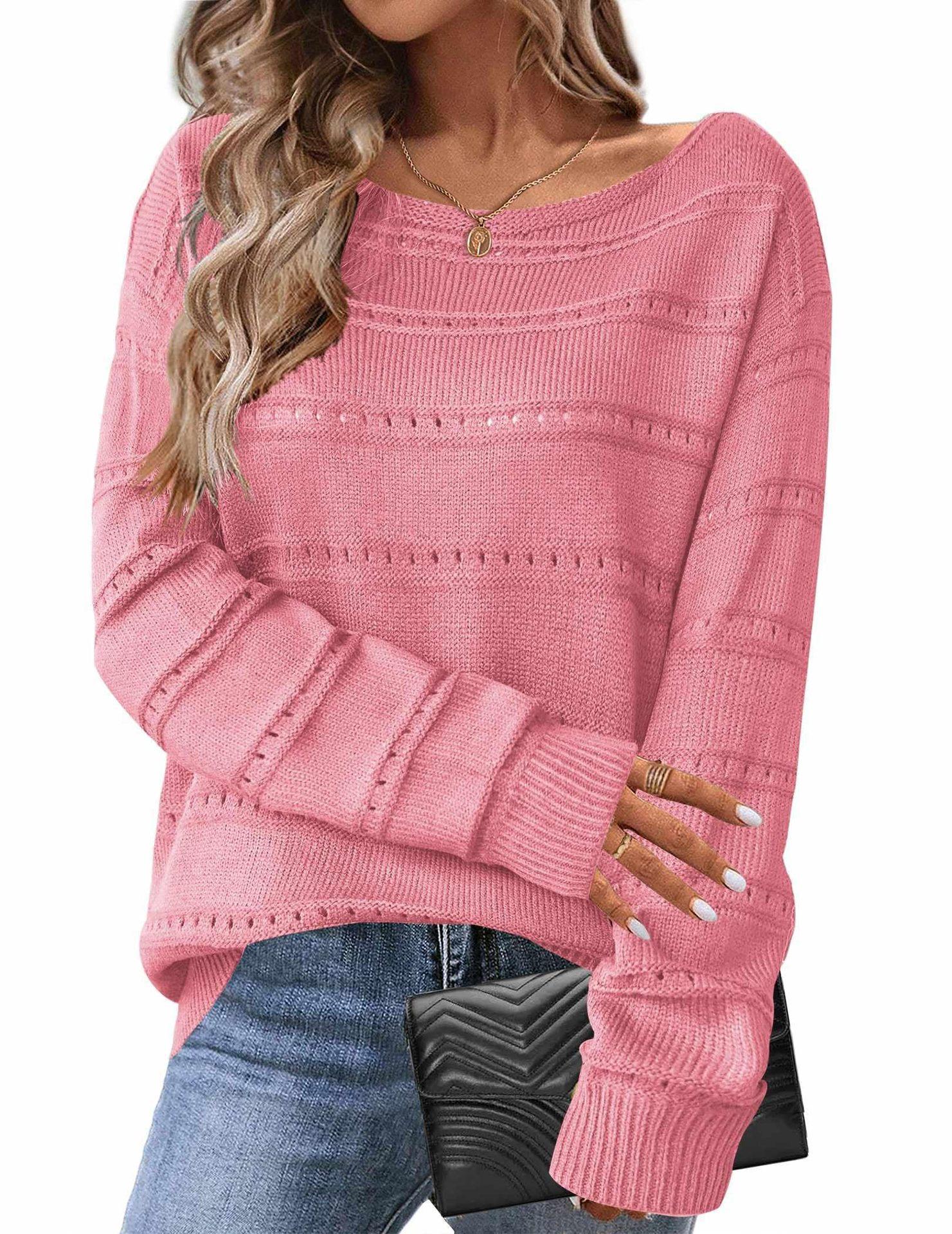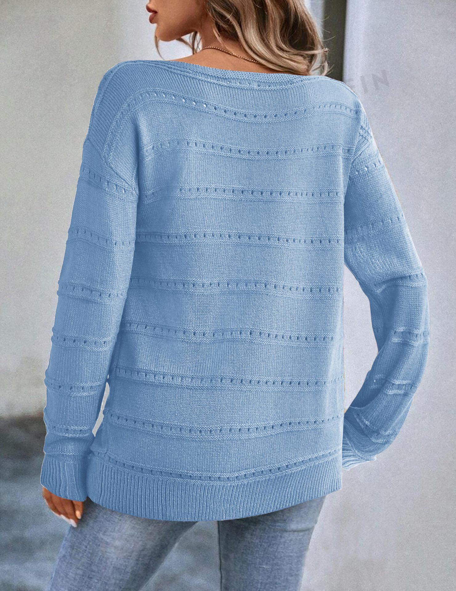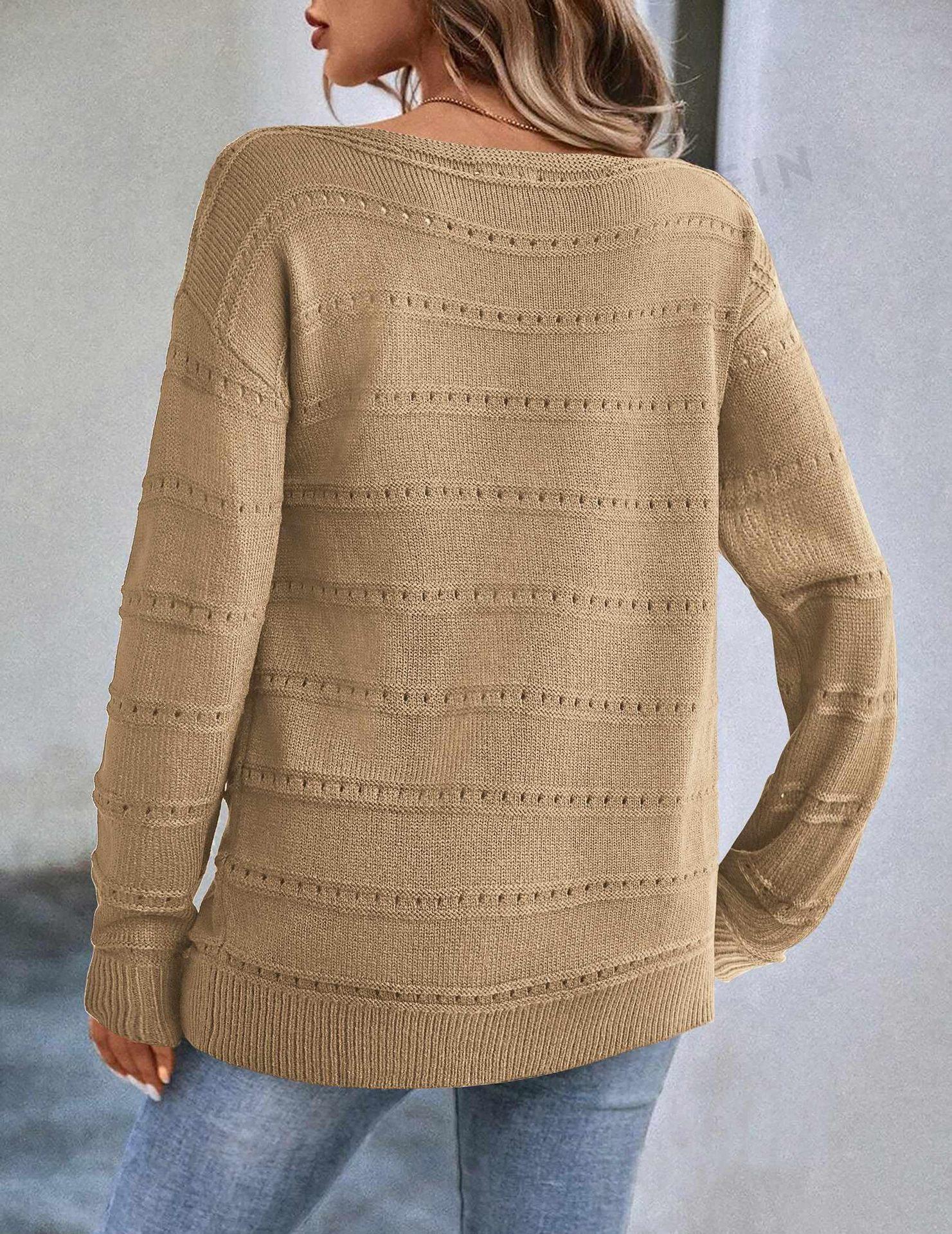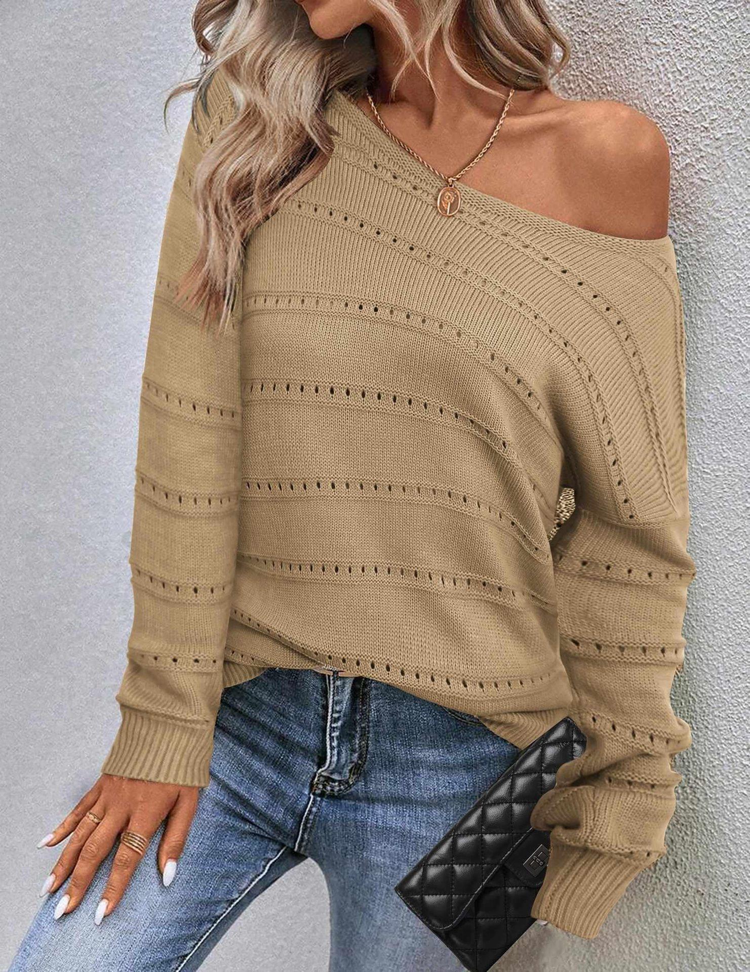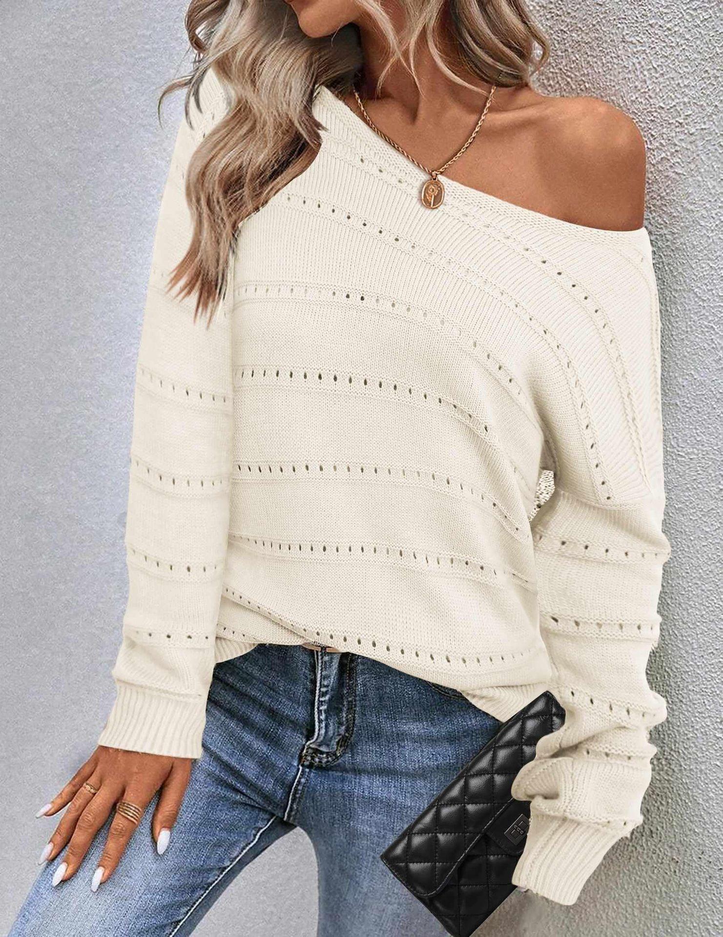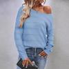 2024 Amazon Otoño e Invierno Nuevo Top de Punto Calado para Mujer Lindo de Manga Larga con Hombros Descubiertos