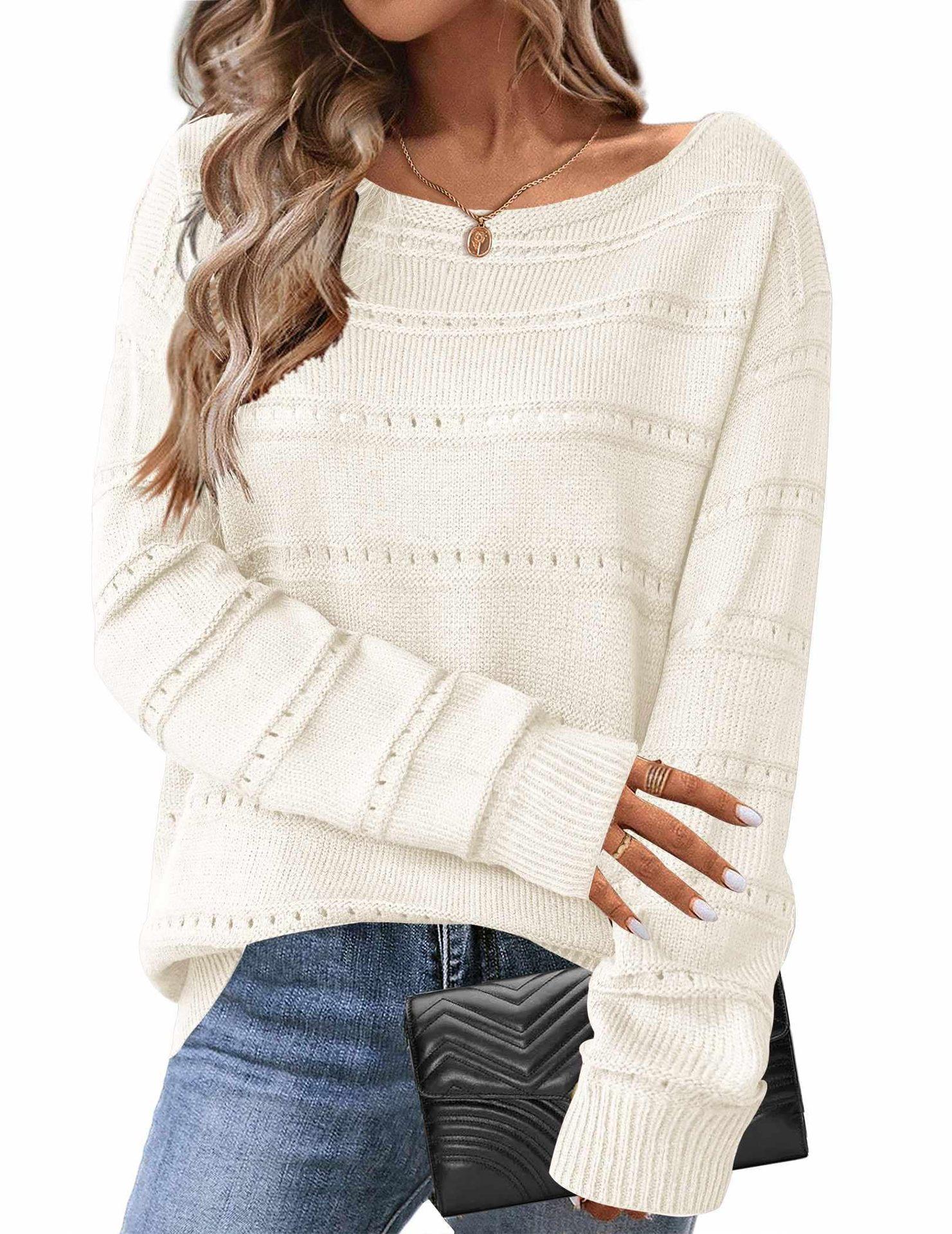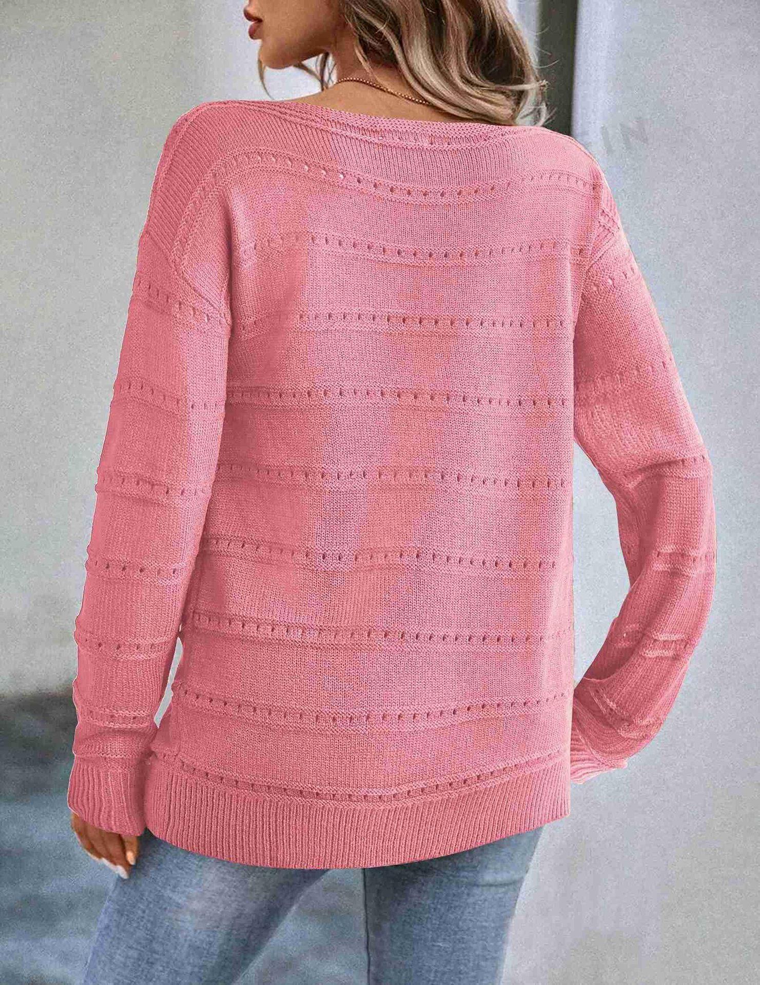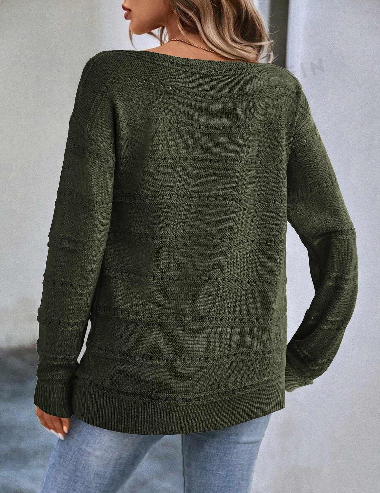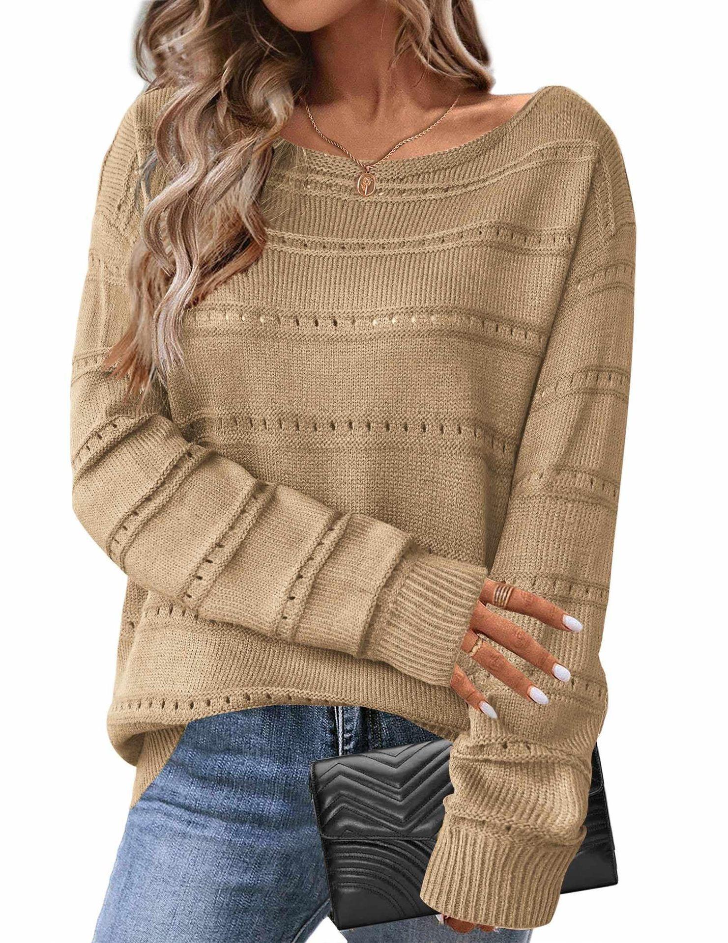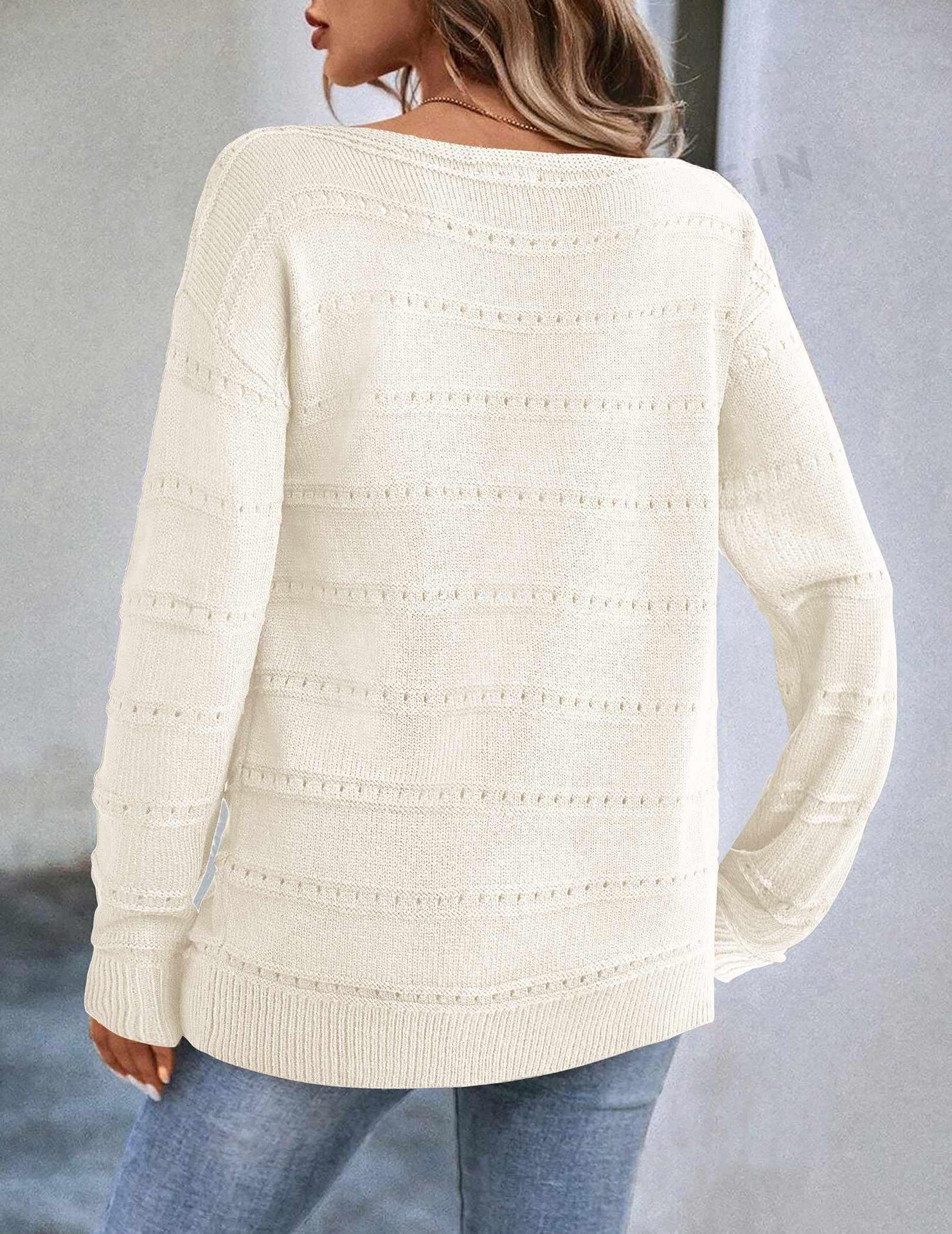 2024 Amazon Otoño e Invierno Nuevo Top de Punto Calado para Mujer Lindo de Manga Larga con Hombros Descubiertos