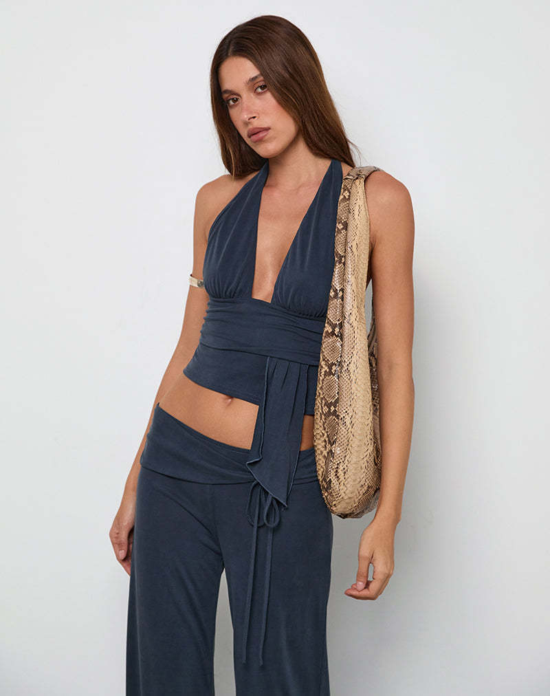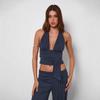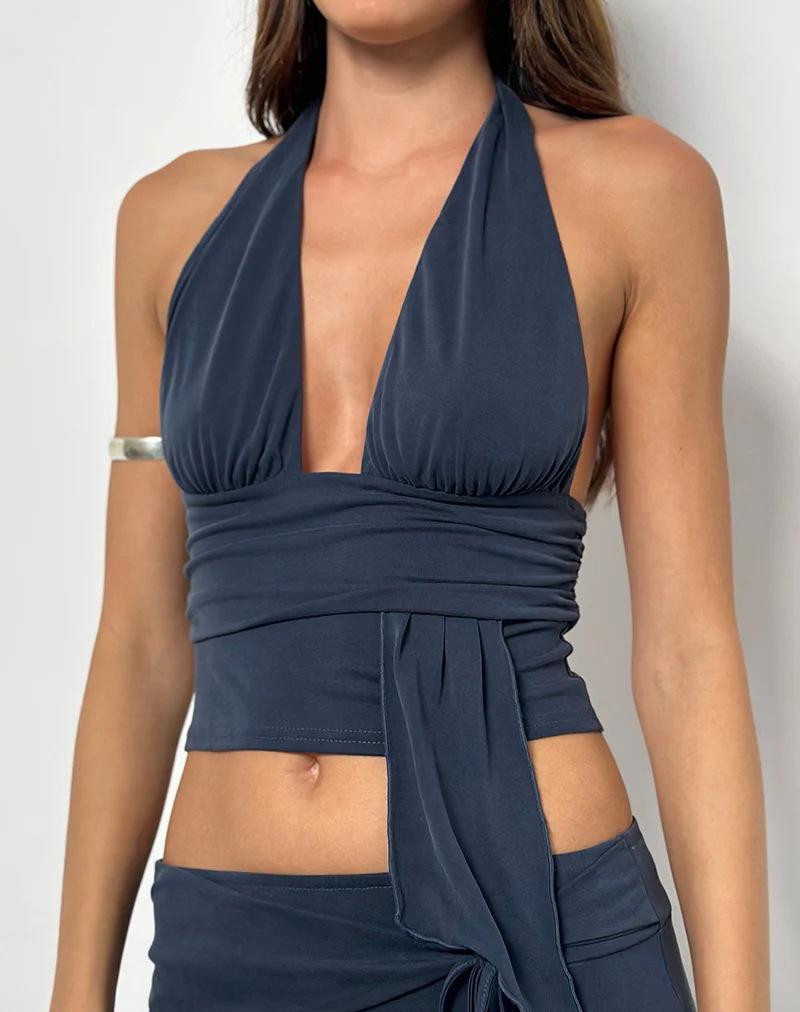 Solid color, slim fit, navel exposed, design, halter neck, backless