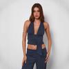 2025 Europeo y Americano Transfronterizo Verano Sexy Color Sólido Diseño Ajustado Crop Top Halter Espalda Descubierta Conjunto Casual para Mujer Venta al por Mayor