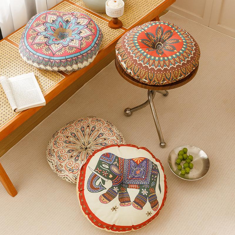 Cojín Redondo de Lino de Algodón Transpirable para Silla Hogar Estilo Bohemio Doble Cara Balcón Ventana Mirador Tatami Alfombra de Piso