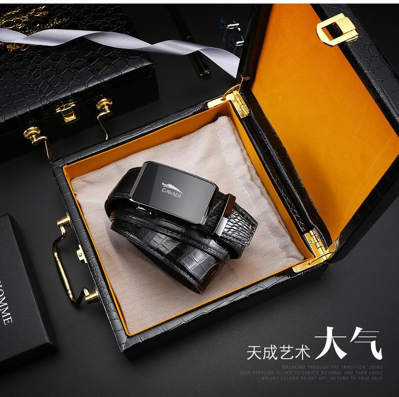 Cinturón de piel de cocodrilo para hombre, productos genuinos, cinturón para pantalones de negocios, cinturón con hebilla automática, cinturón de moda de piel genuina para hombre