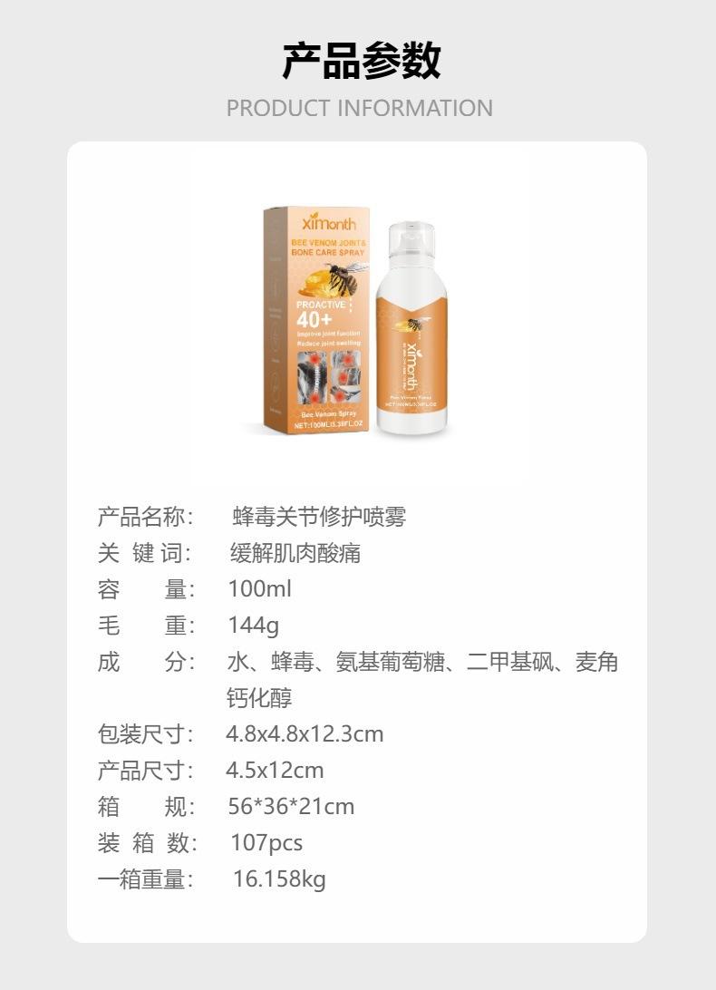 Spray transfronterizo de veneno de abeja para reparación articular para aliviar el dolor lumbar y de rodilla, molestias, cuidado de la salud física