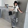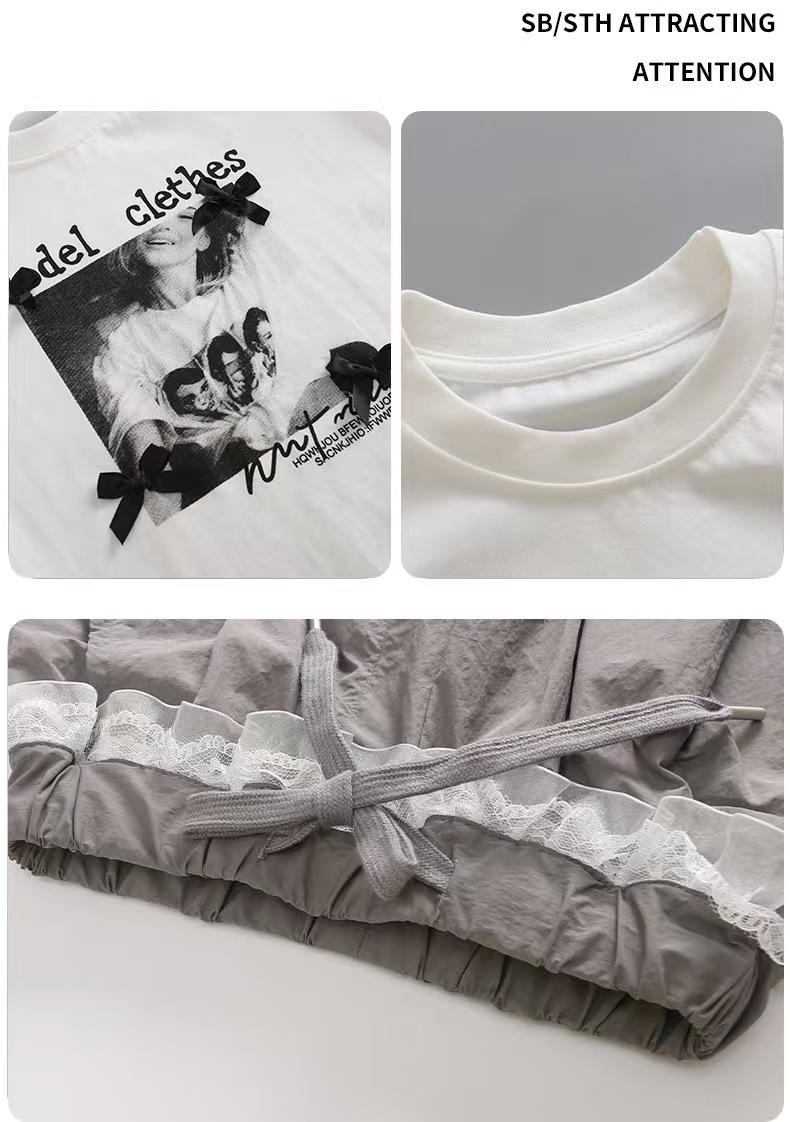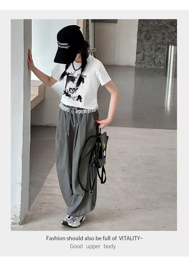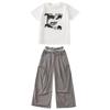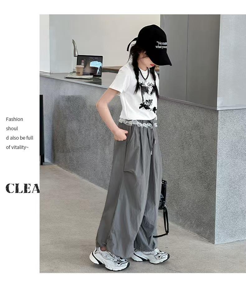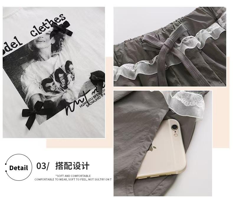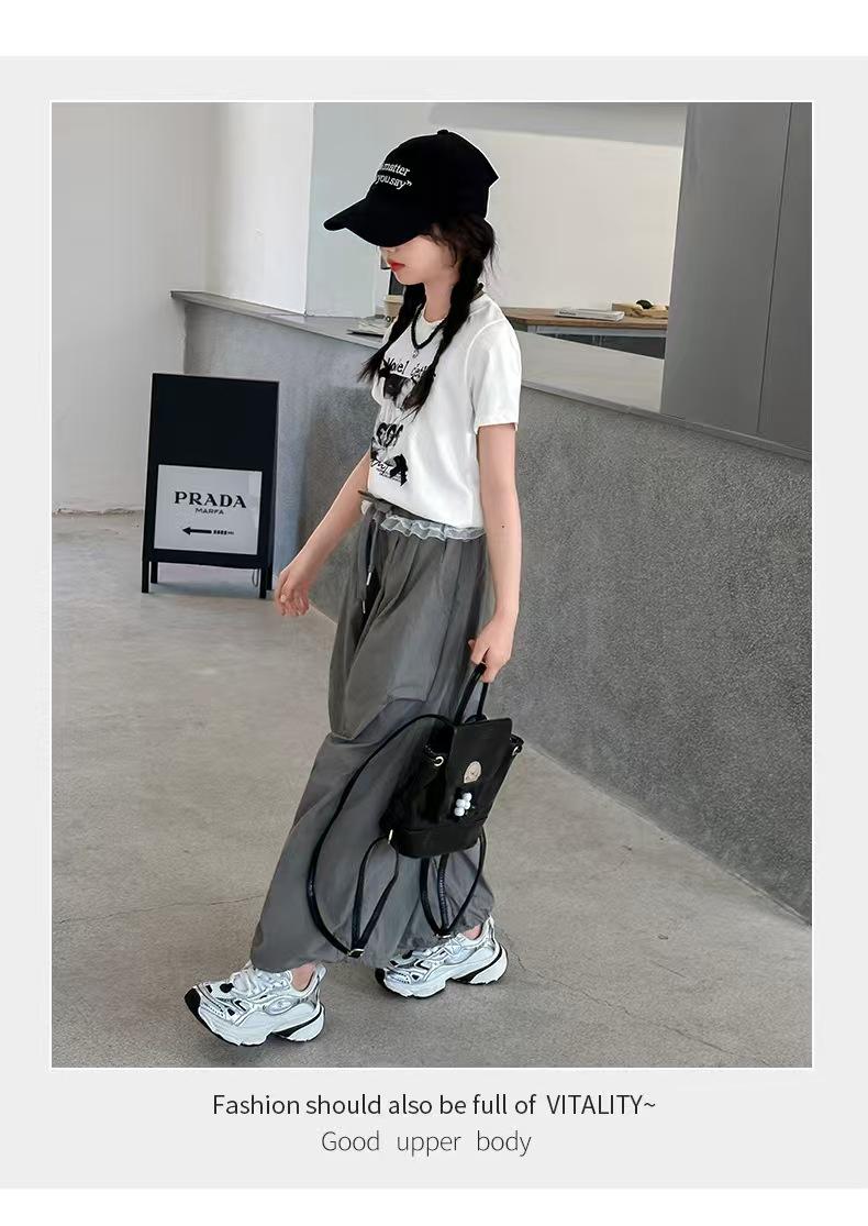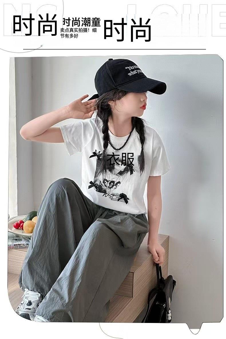 Trajes medianos y grandes para niñas 2025 Verano Nuevo Camisetas casuales de manga corta para niños Pantalones holgados Conjunto de dos piezas con estilo occidental