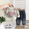Ropa para Niños Yihao Traje de Otoño para Niños 2025 Nuevo Sudadera Estilo Coreano con Letras para Niños Conjunto de Dos Piezas Ropa para Bebé Niño