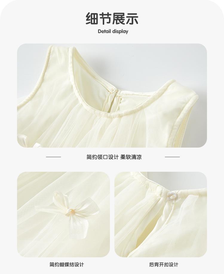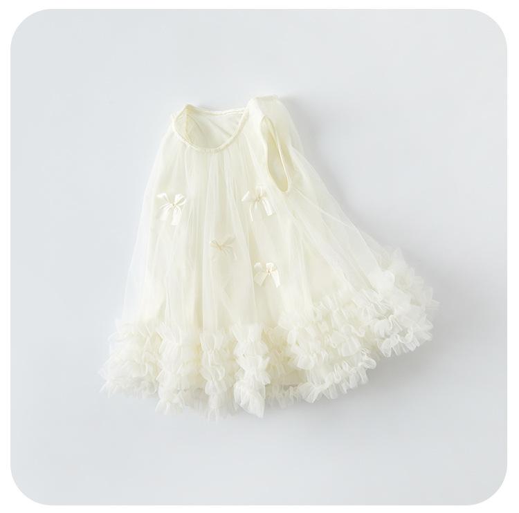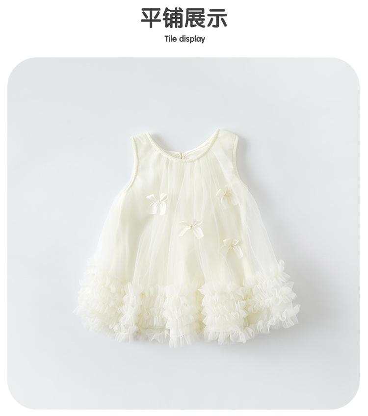 Vestido de Malla con Lazo para Niñas 2025 Verano Nuevo Vestido Infantil Vestido de Princesa Delgado para Bebé