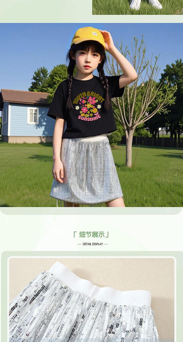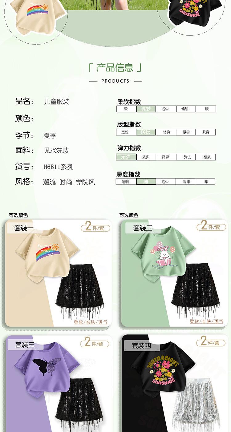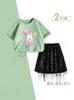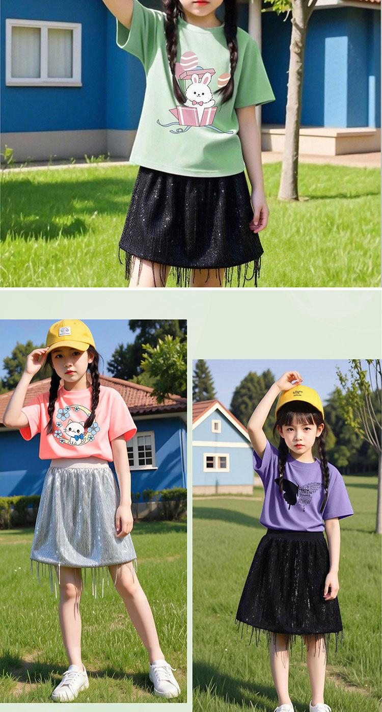Traje de Verano para Niñas 2025 Nuevo Niños Medianos y Grandes Estilo Coreano Camiseta de Manga Corta Falda con Borlas Conjunto de Dos Piezas Moderno