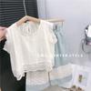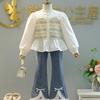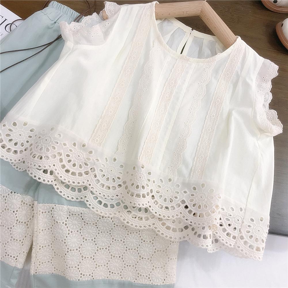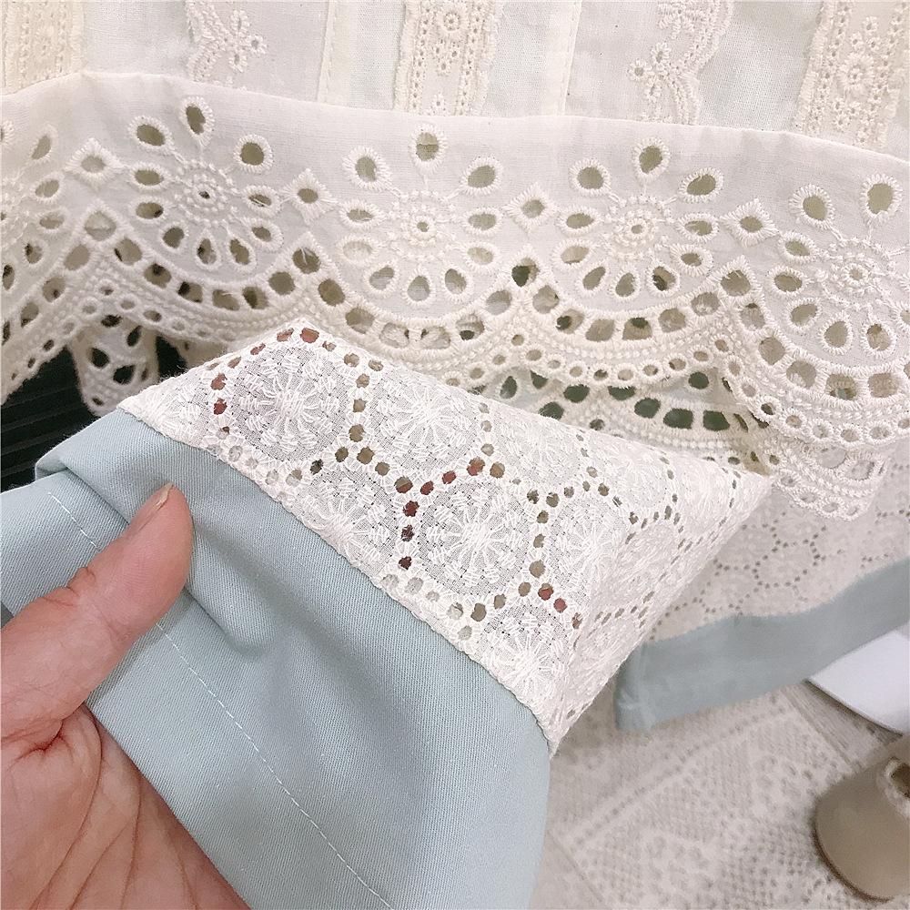 Mung bean pants lace wide leg pants suit