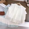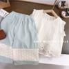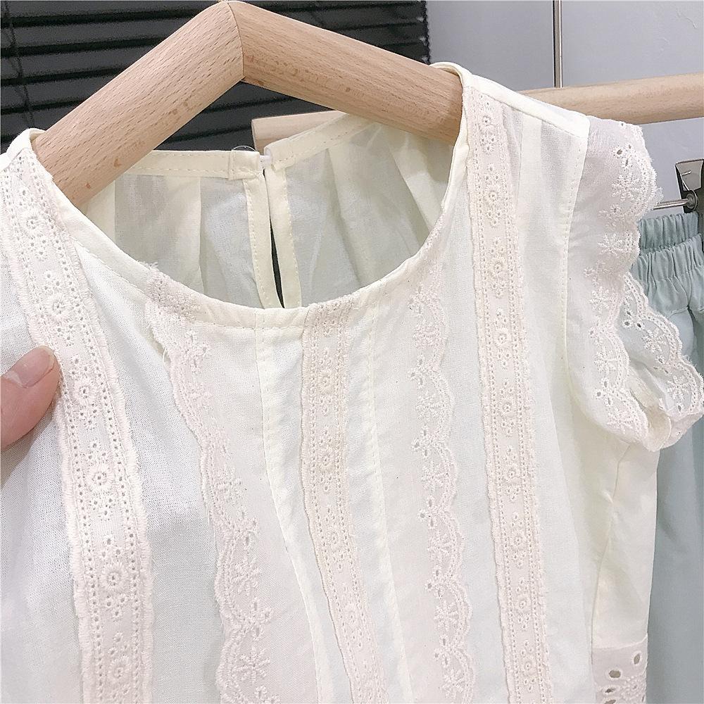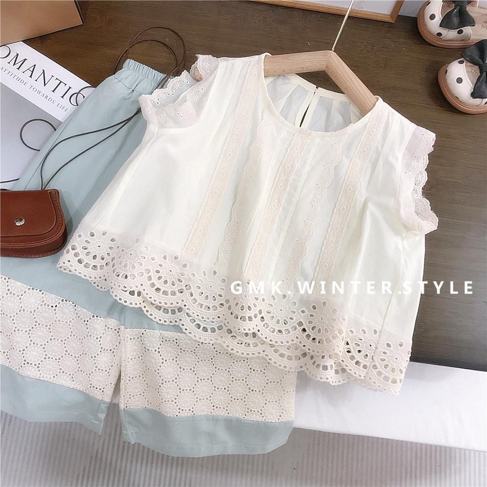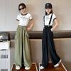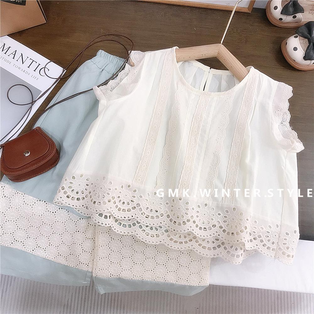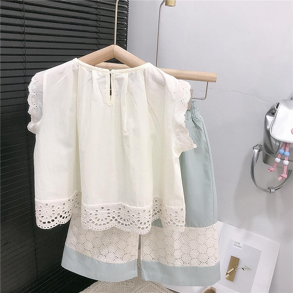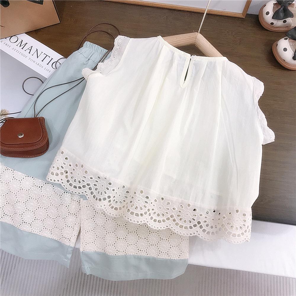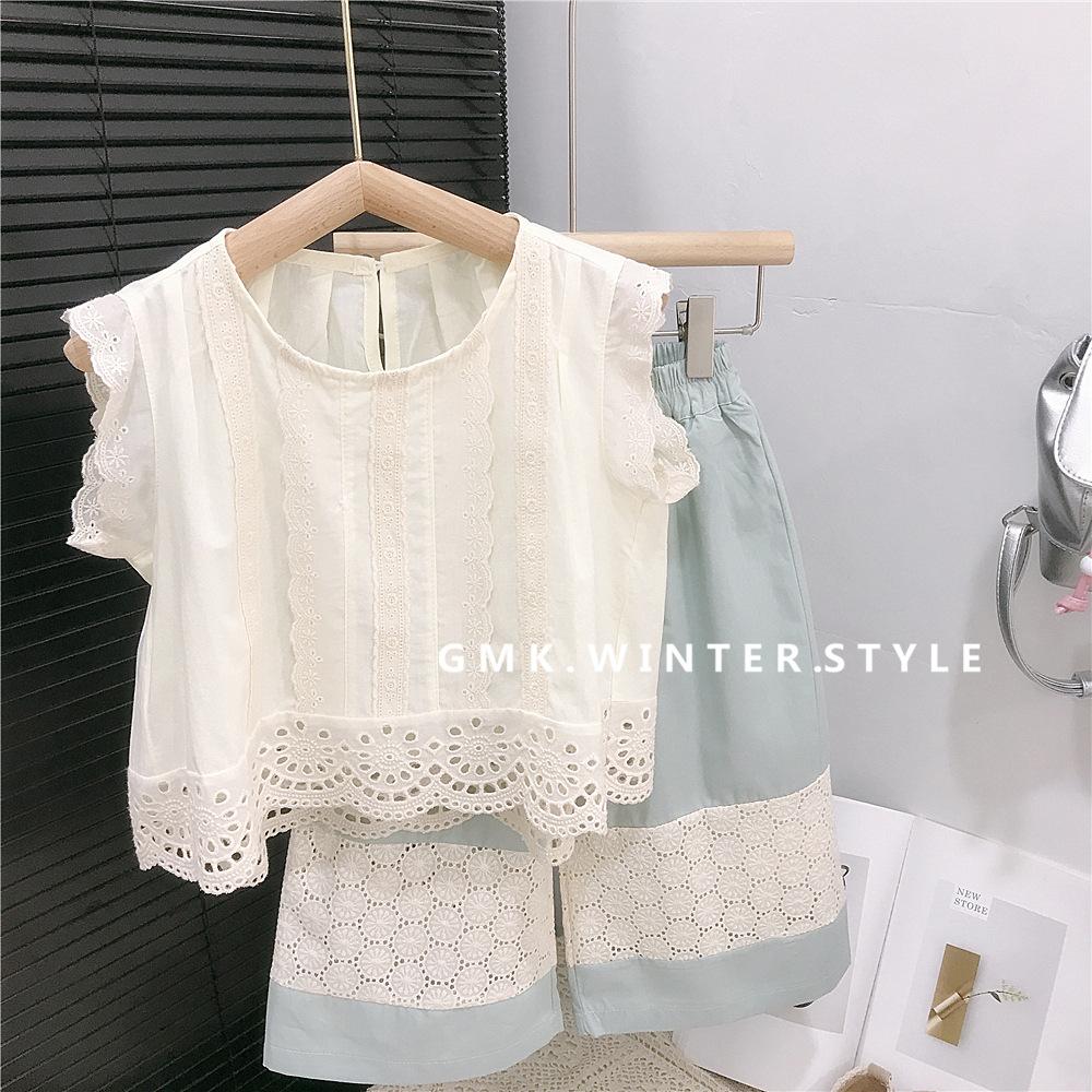 Pantalones de pierna ancha para niñas Verano Delgados Niños Niños de talla pequeña y mediana Estilo occidental para niños Tesoro para mujer Suelto Encaje Top Pantalones capri traje