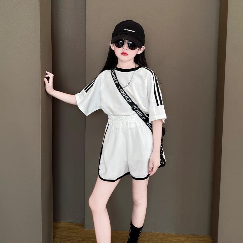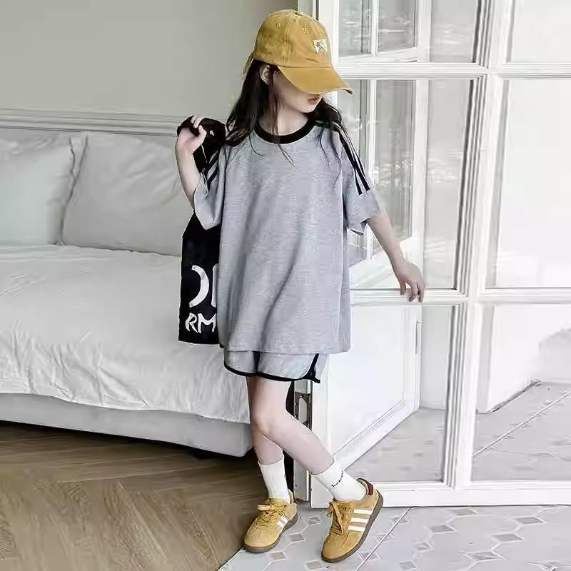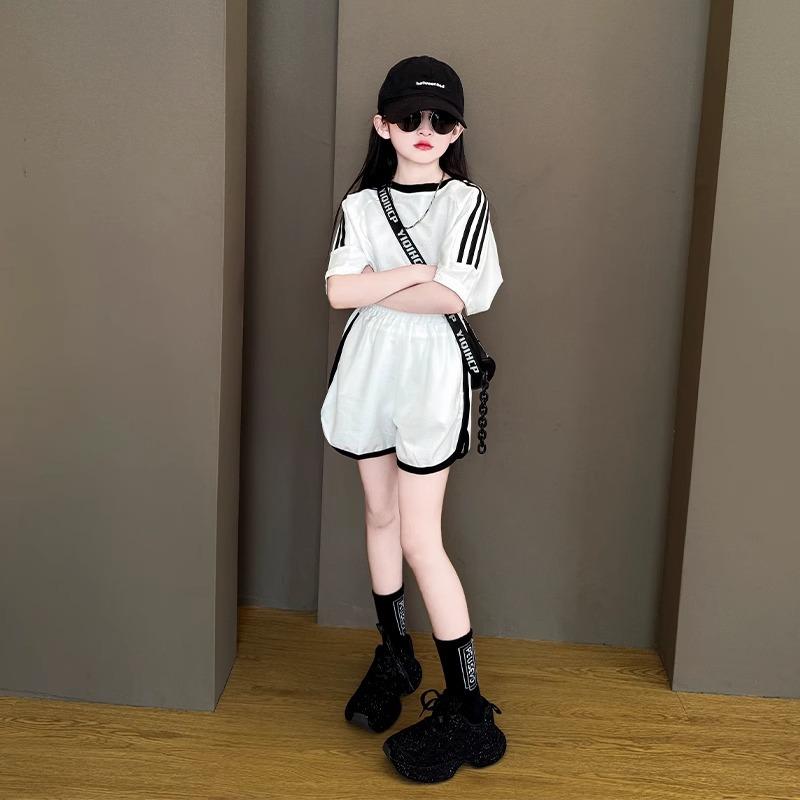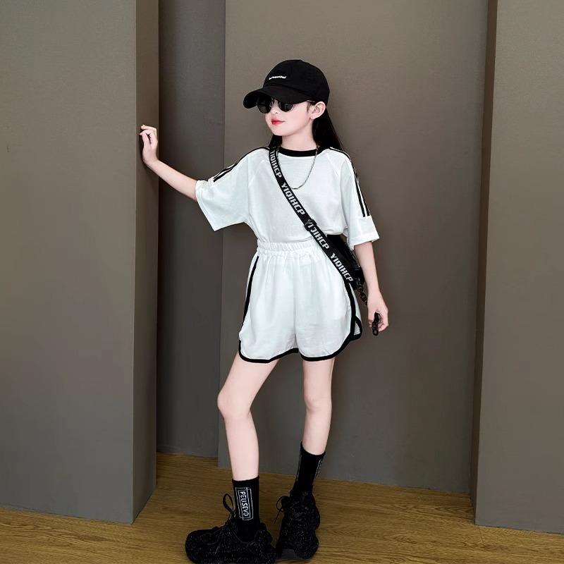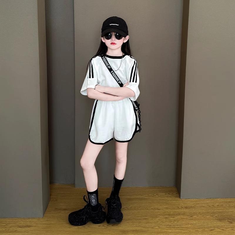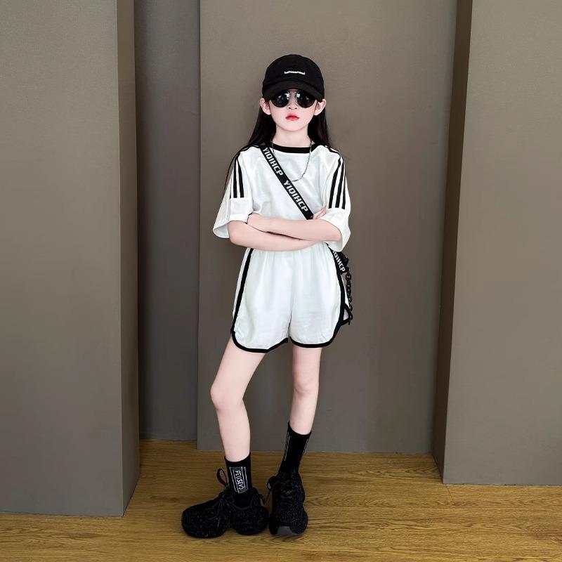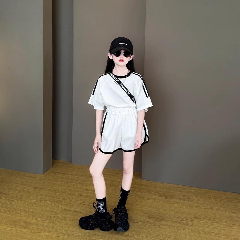 Compra Traje de Manga Corta para Niñas Estilo Coreano Moda Infantil Moderna y Trendy para la Calle Ropa de Verano para Niños Conjunto de Dos Piezas Deportivo y Casual de Verano para Niños al por mayor en Joom.pro