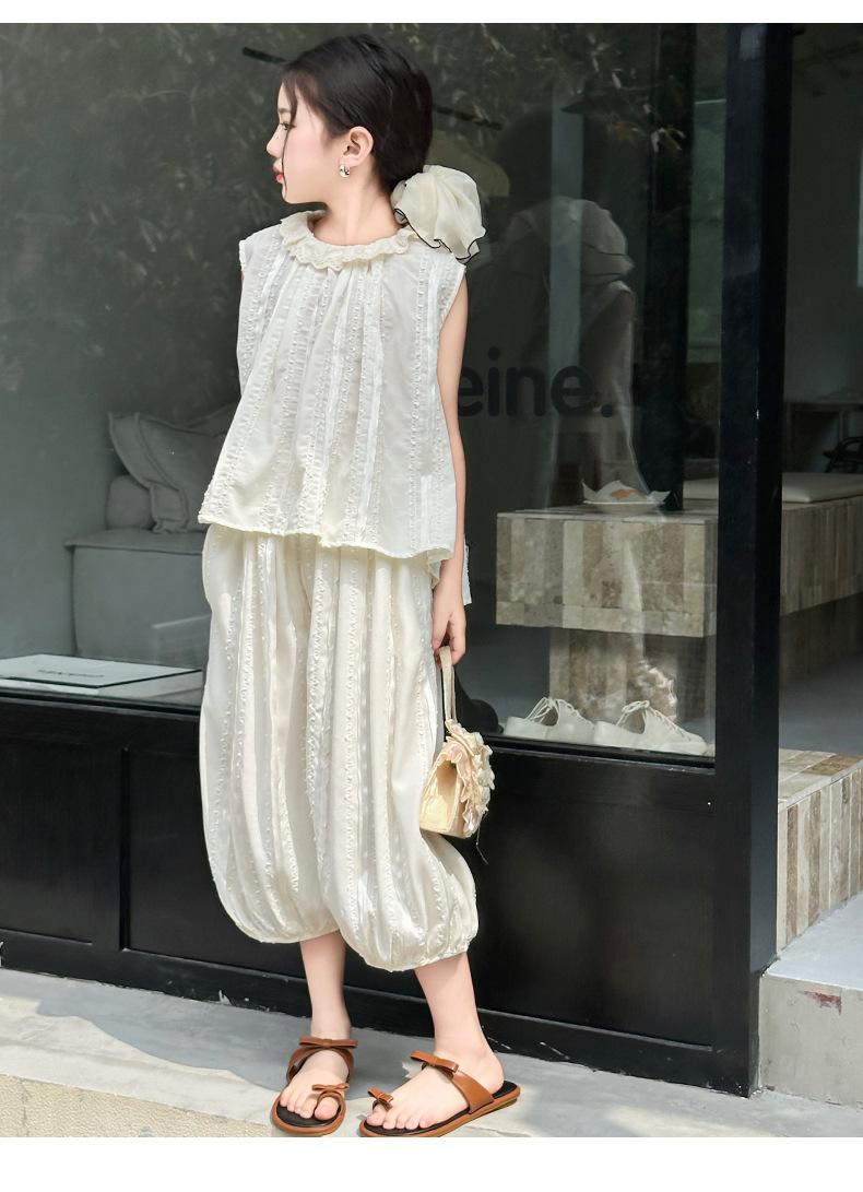 Pantalones Yamamoto para Niñas Traje de Verano 2025 Nuevo Estilo Niños Grandes Verano Delgado Moda Infantil Pierna Ancha Conjunto de Dos Piezas
