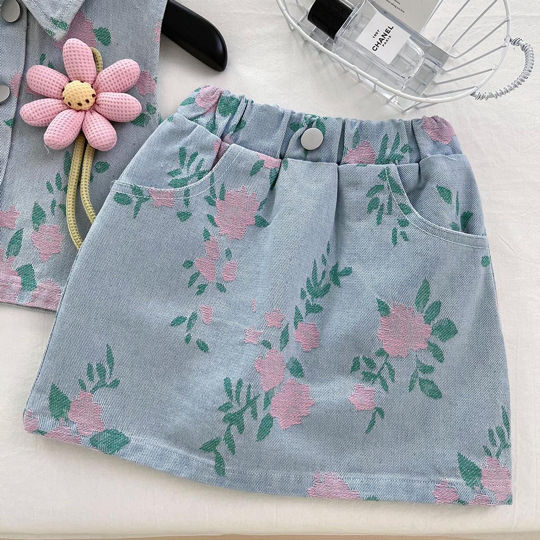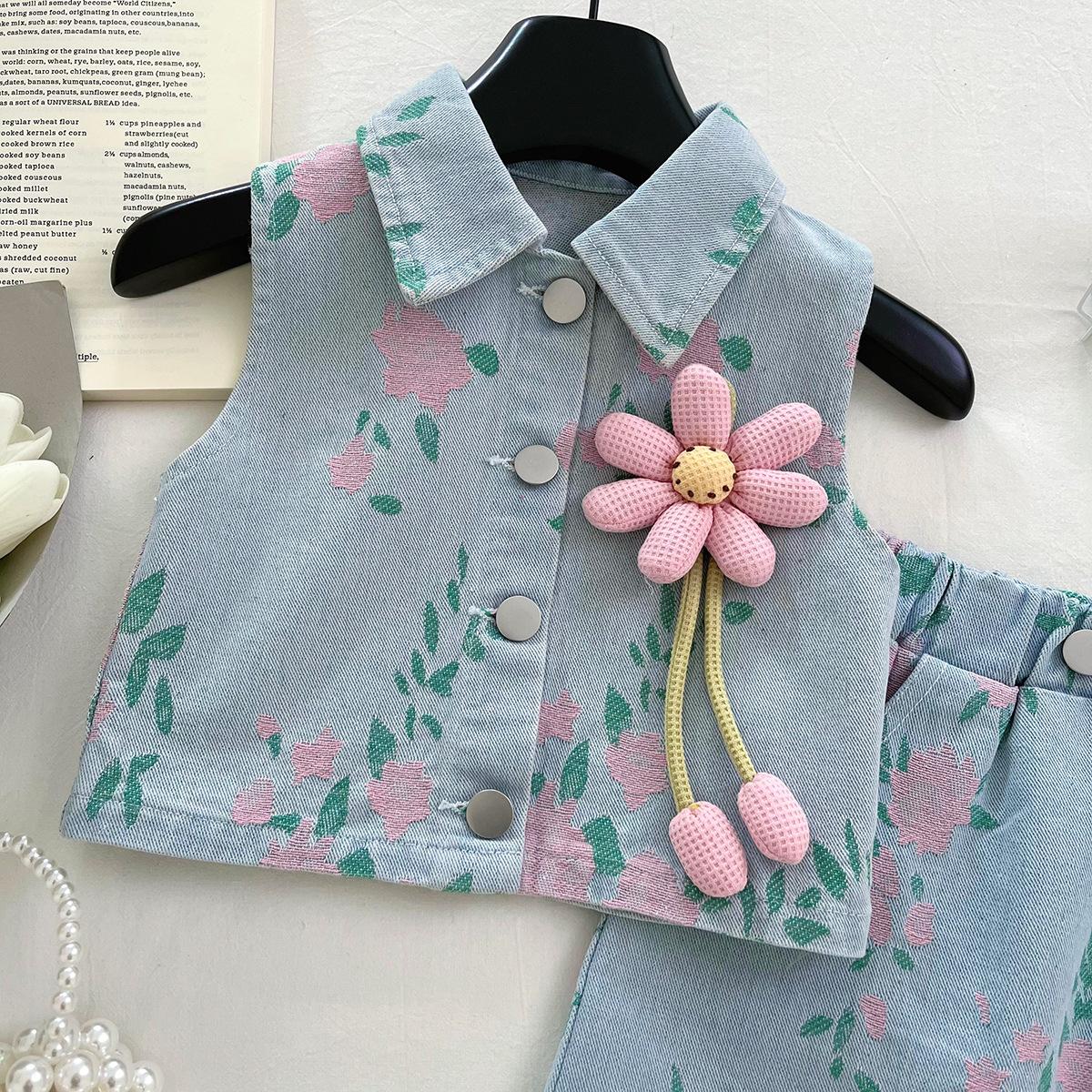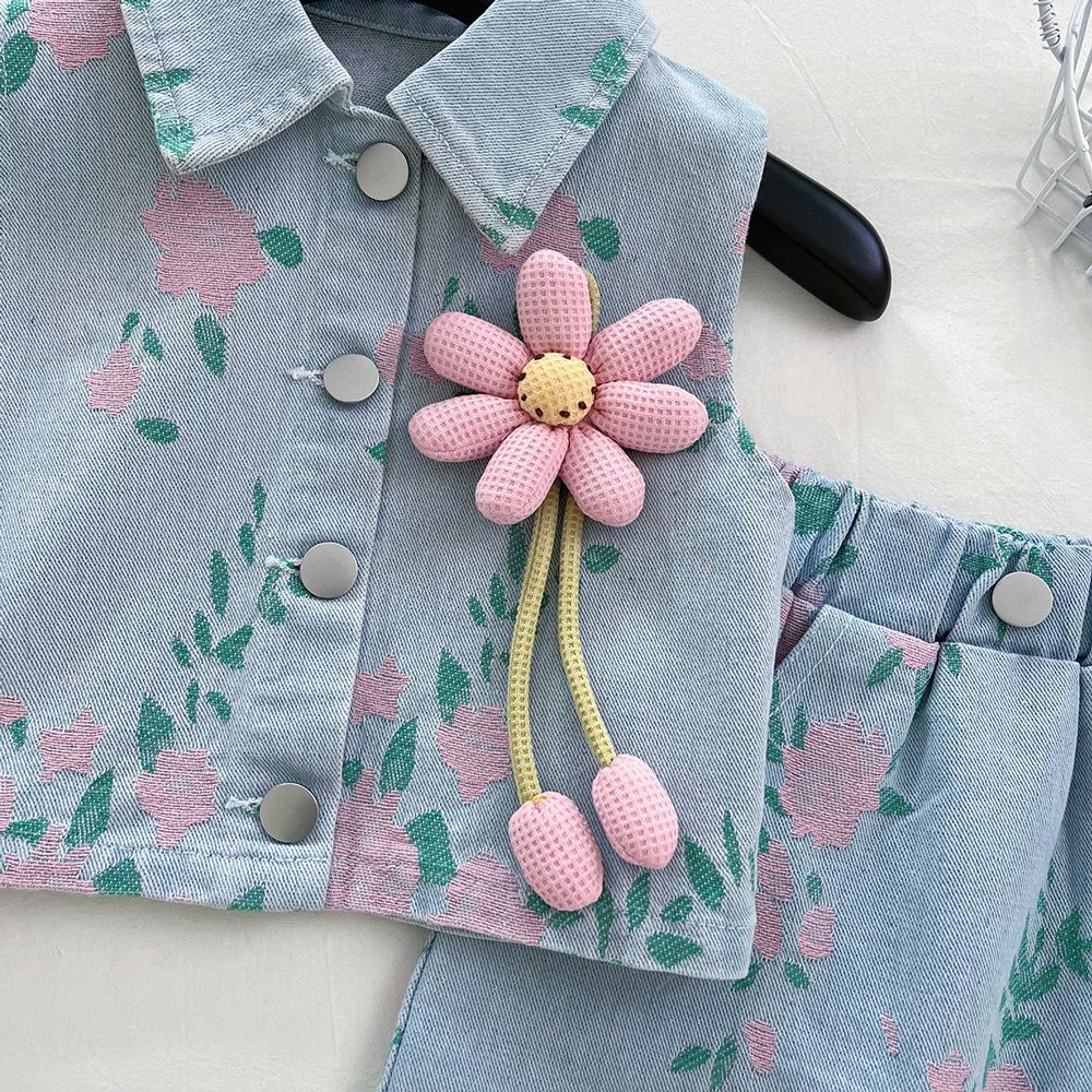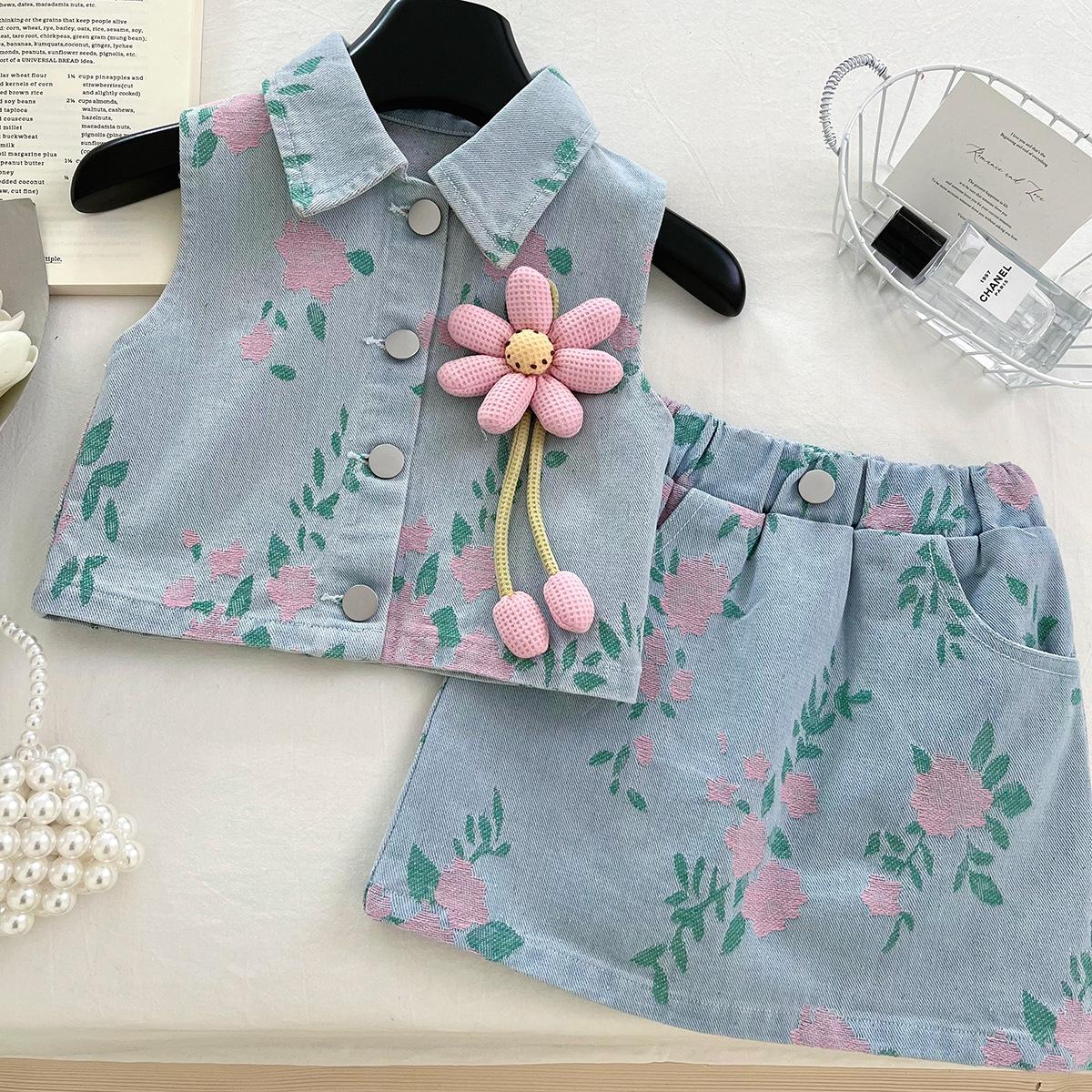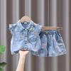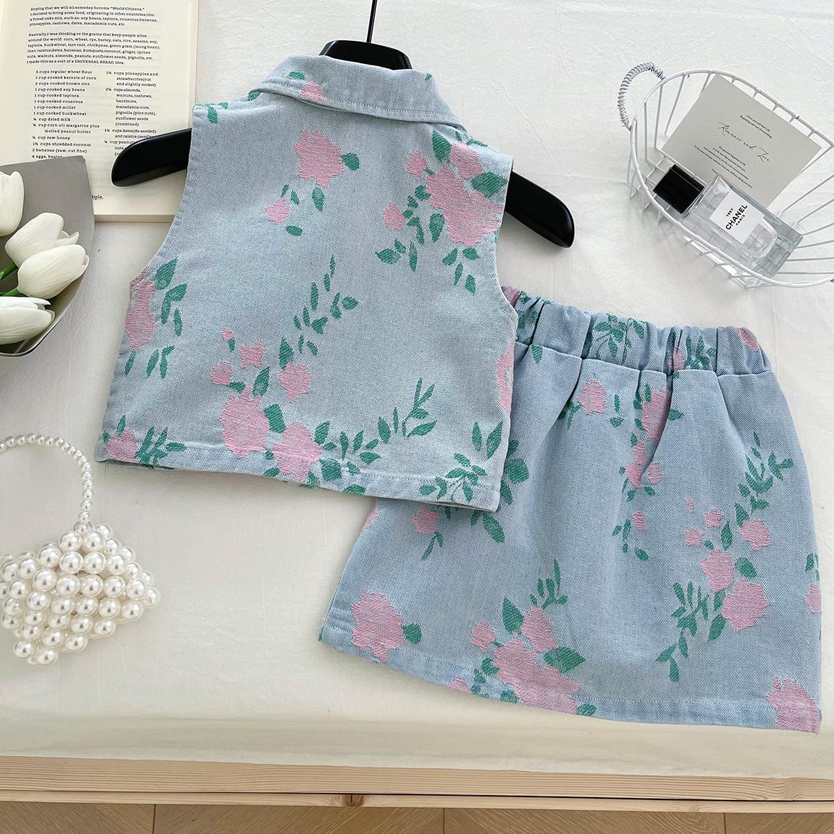 Verano 2025 nuevo estilo coreano para niñas estilo extranjero estampado mezclilla traje sin mangas bebé lindo conjunto de falda 6536