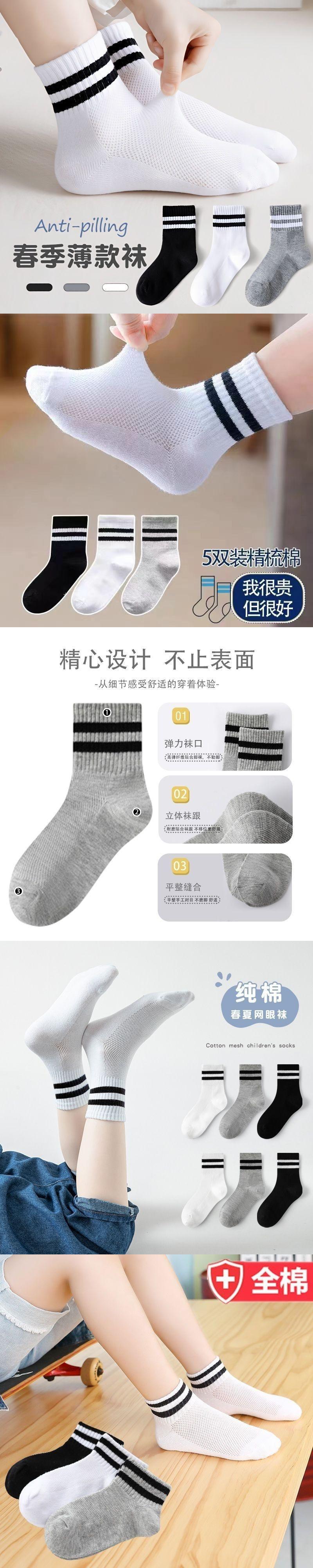 Calcetines de Verano de Malla de Algodón para Niños Estudiantes Primavera y Otoño Bebé Delgados Blancos Transpirables Media Caña Niñas Calcetines de Color Puro