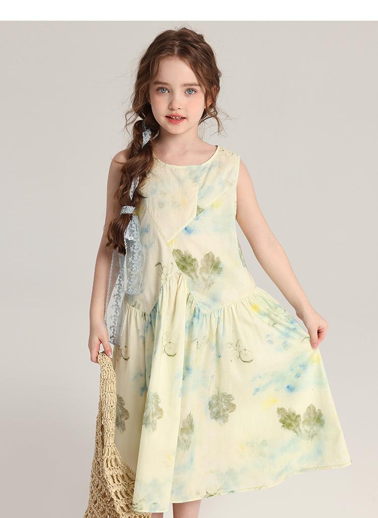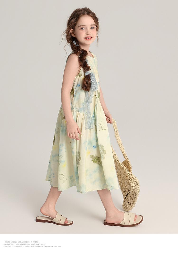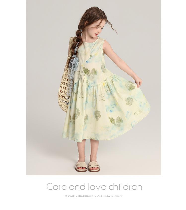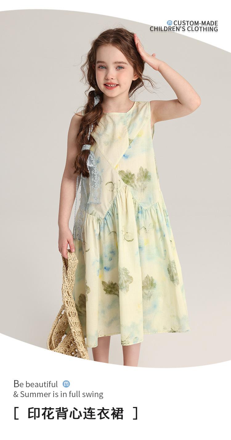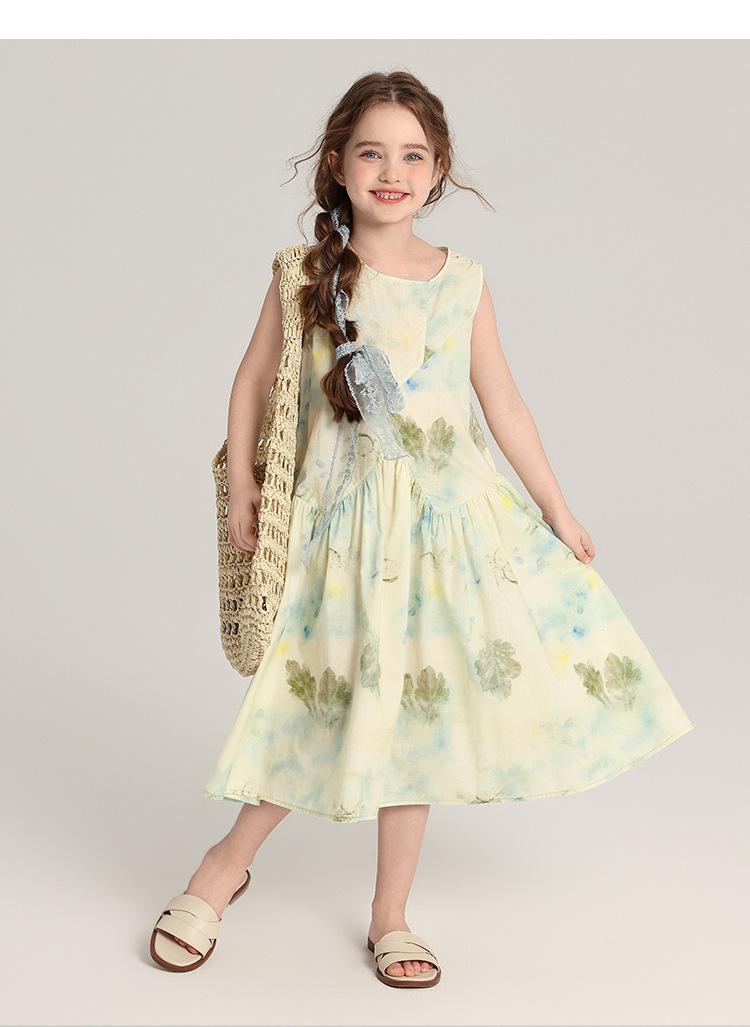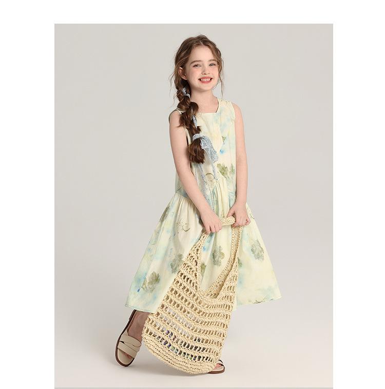 Pudding Haru Ropa para Niños Estilo de Niñas Falda Larga Verano 2025 Nuevo Vestido Versátil Sin Mangas para Vacaciones